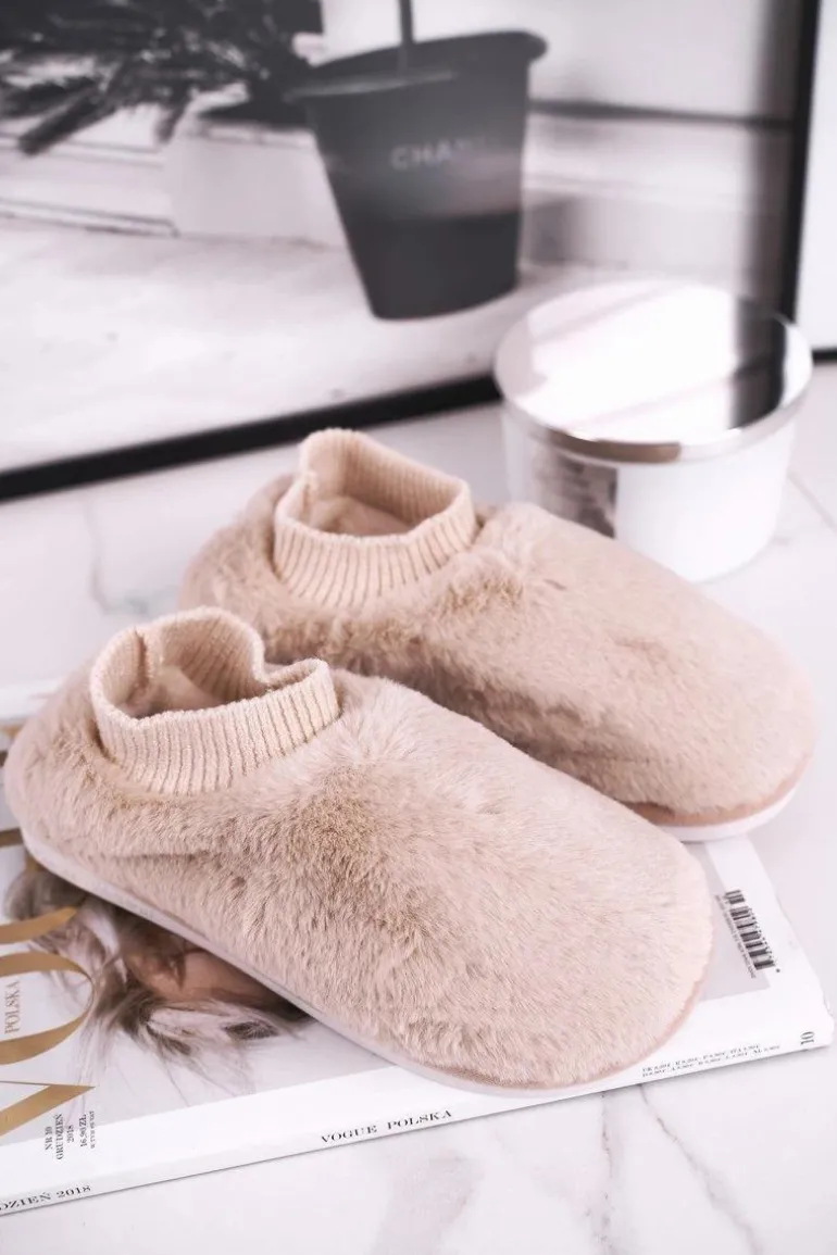 Papcie Damskie Z Futerkiem I Skarpetką Beżowe Yeti