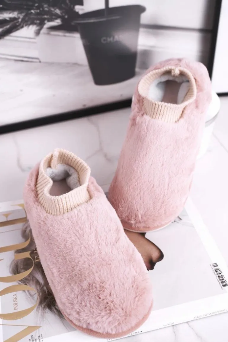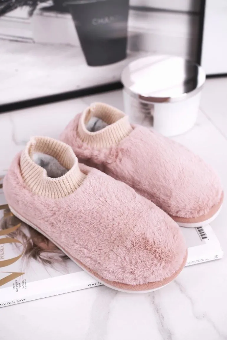 Papcie Damskie Z Futerkiem I Skarpetką Różowe Yeti
