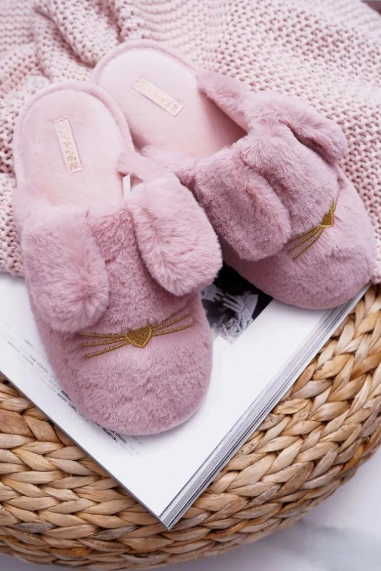 Papcie Damskie Z Futerkiem I Uszkami Ciemny Róż Semmi