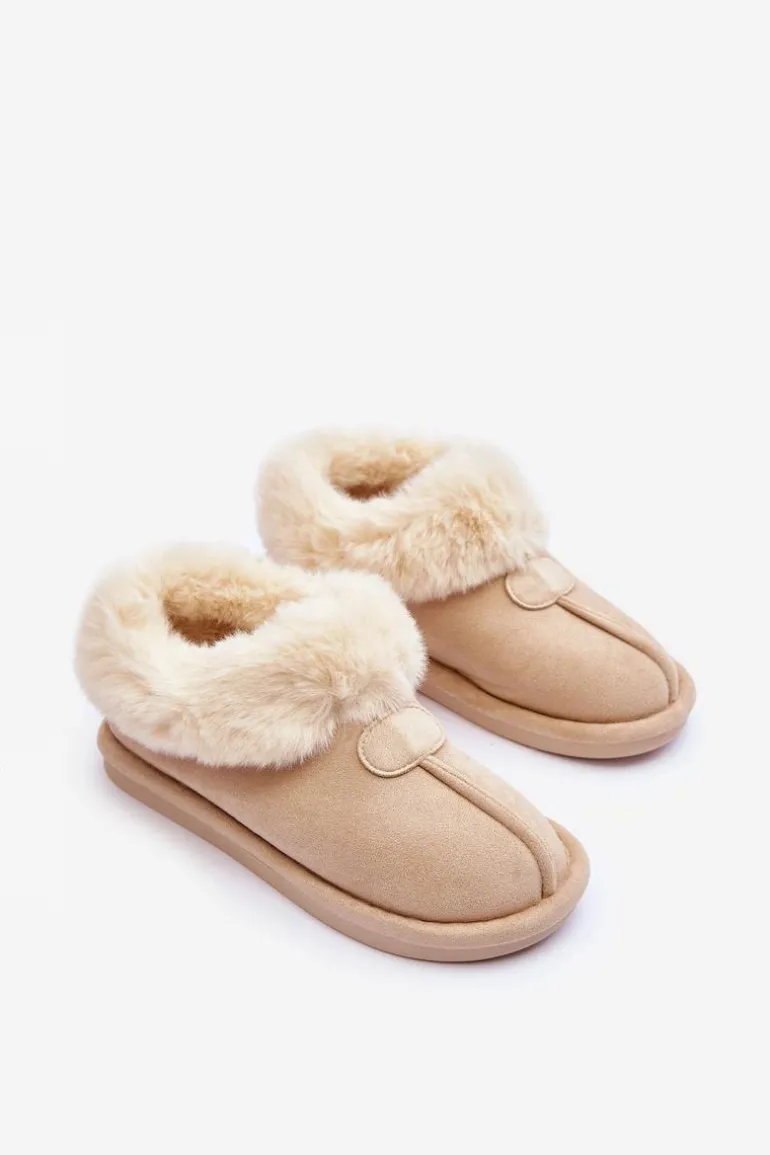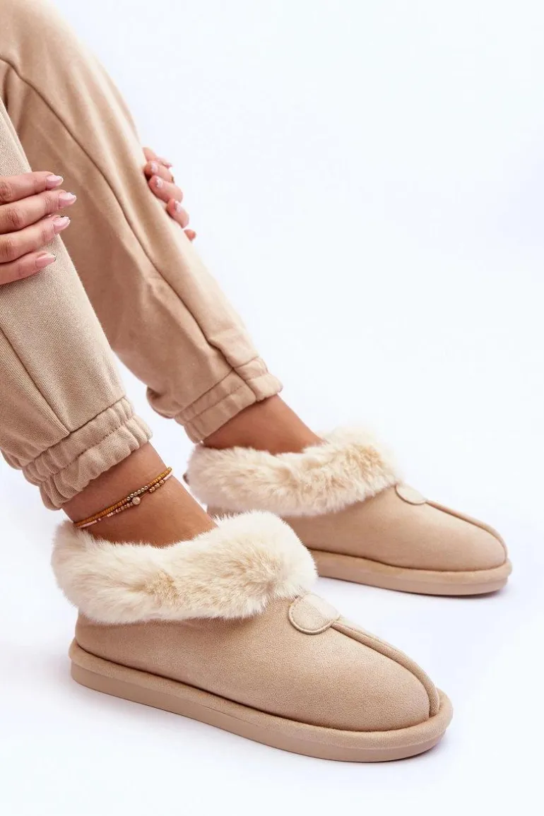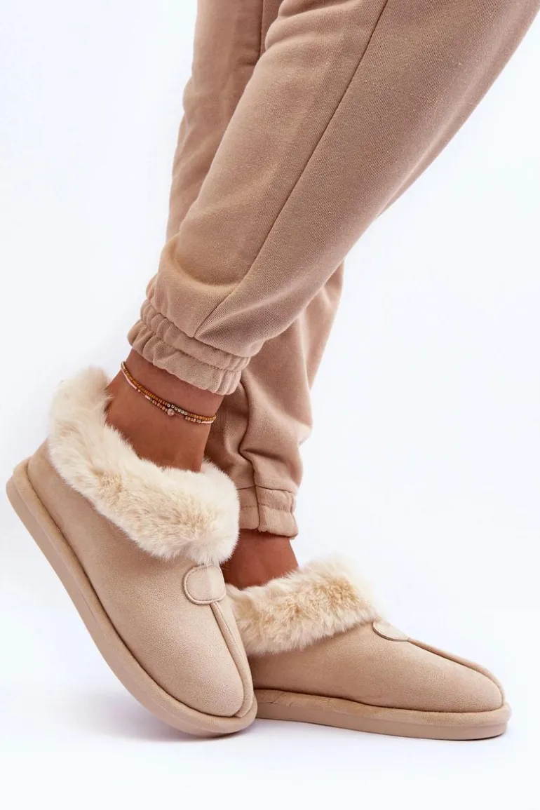 Papcie Damskie Z Futerkiem Jasnobeżowe Lanoze