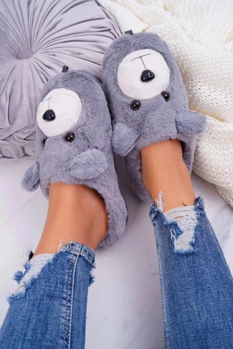 Papcie Damskie Z Futerkiem Miś Szare Bear
