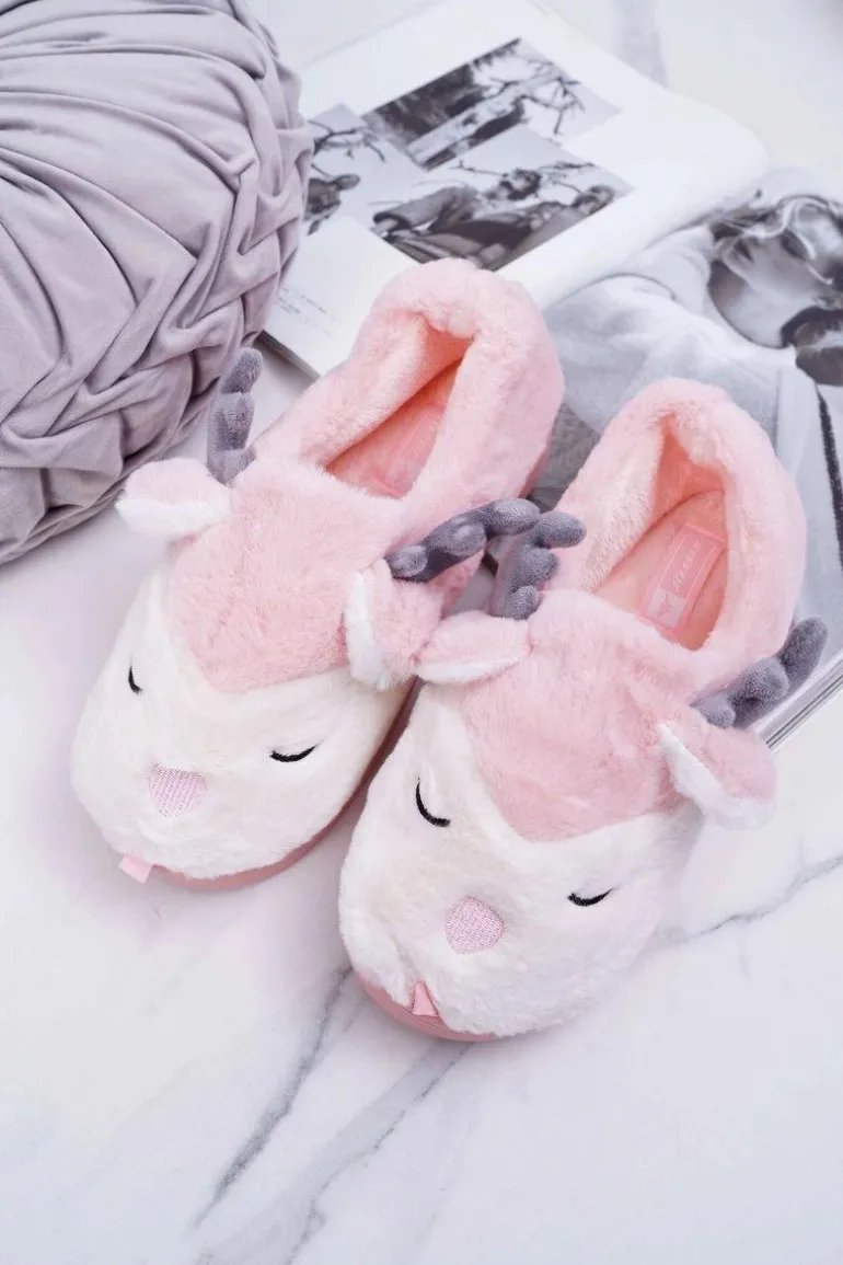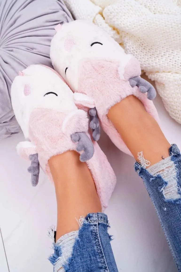 Papcie Damskie Z Futerkiem Renifery Róż Reindeer