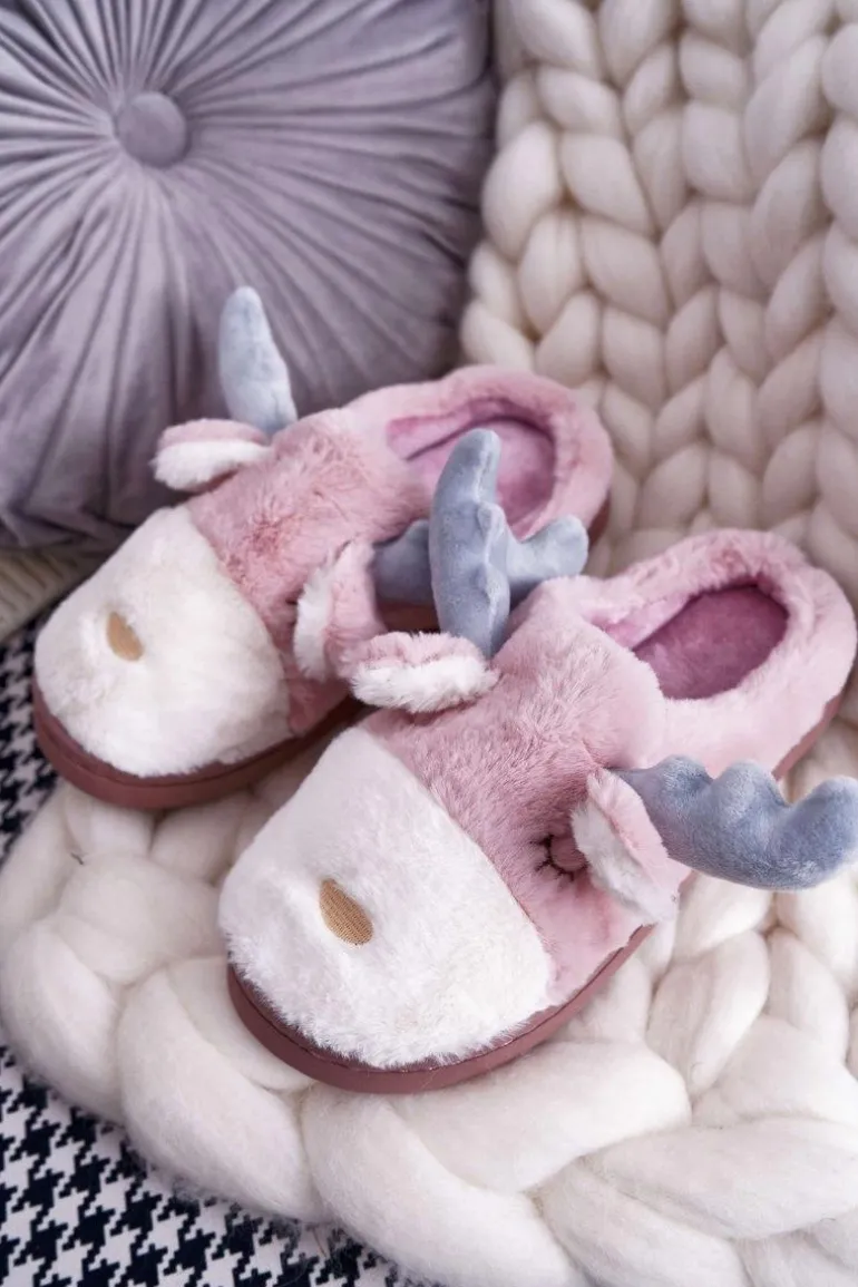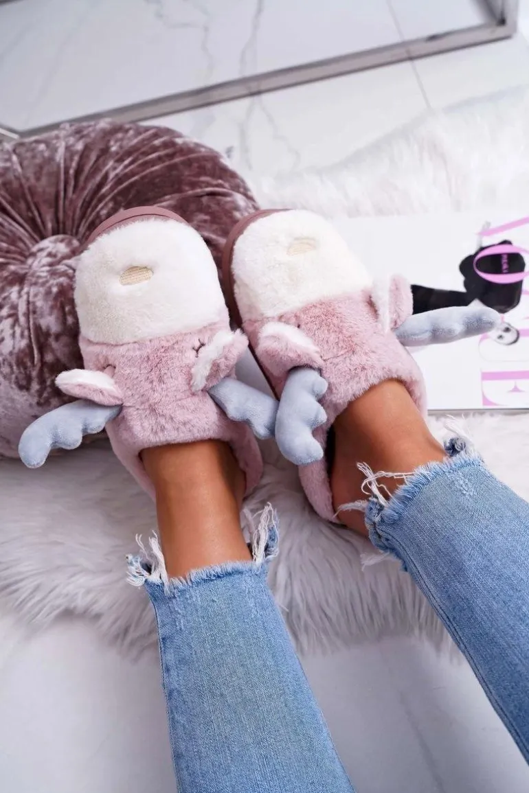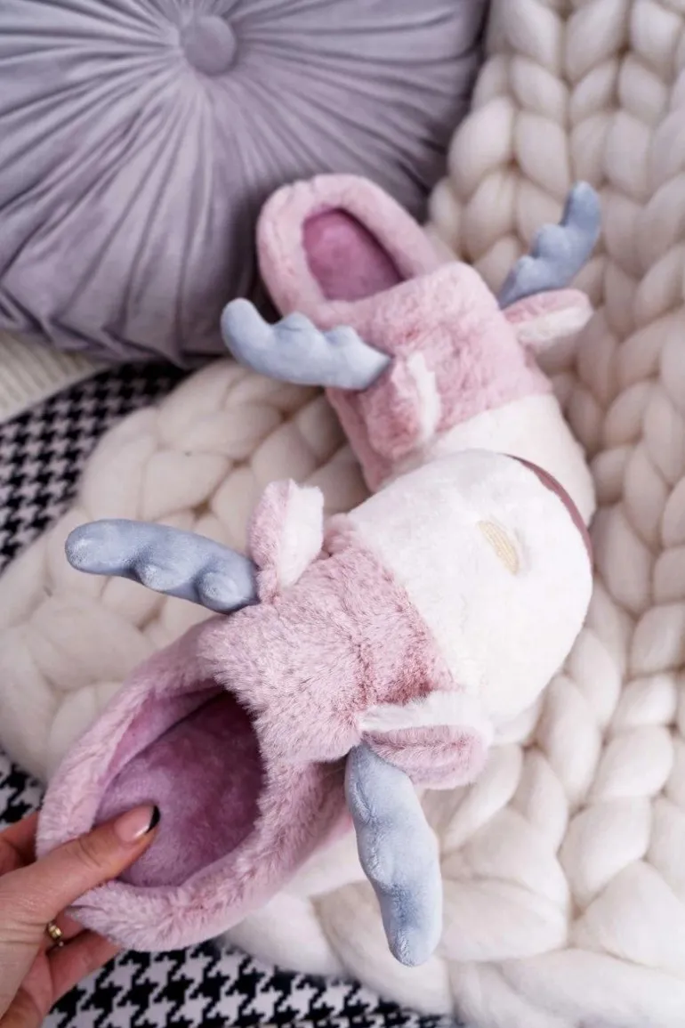Papcie Damskie Z Futerkiem Renifery Różowe Deff