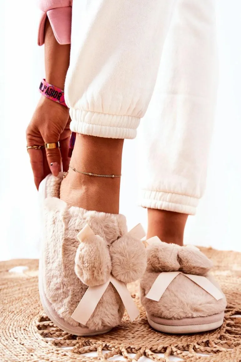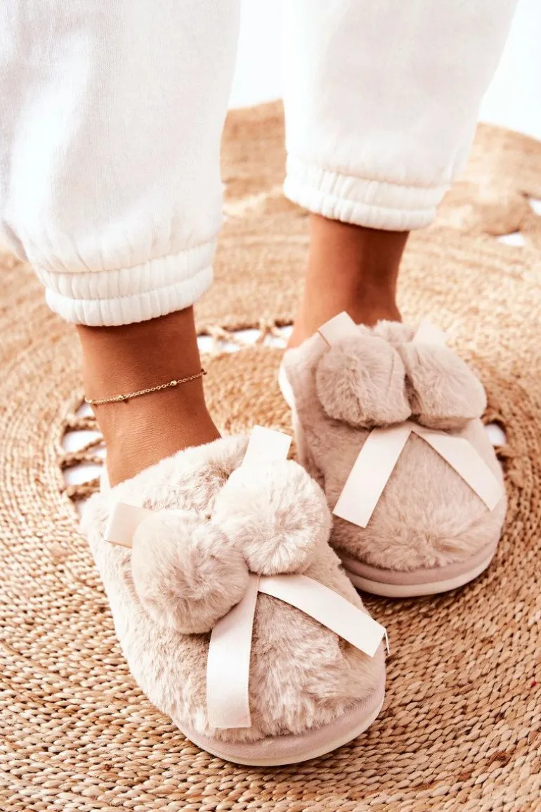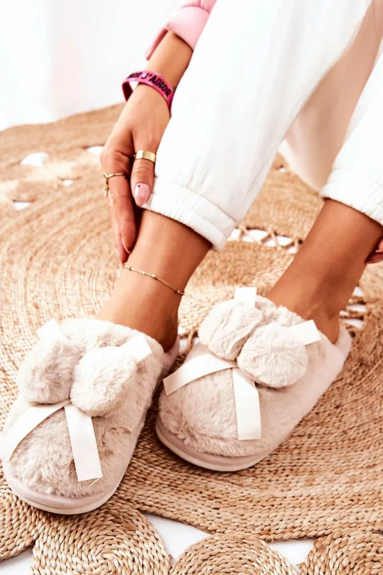 Papcie Futrzane Z Pomponami Beżowe Pamppy