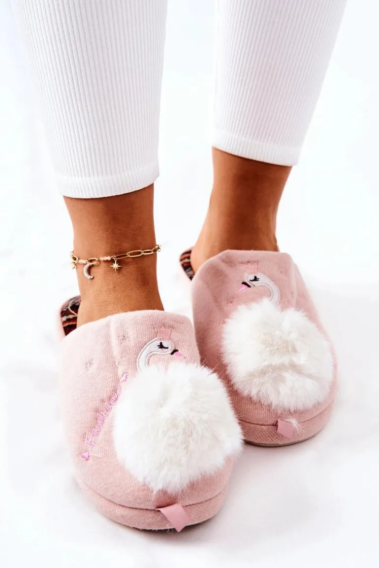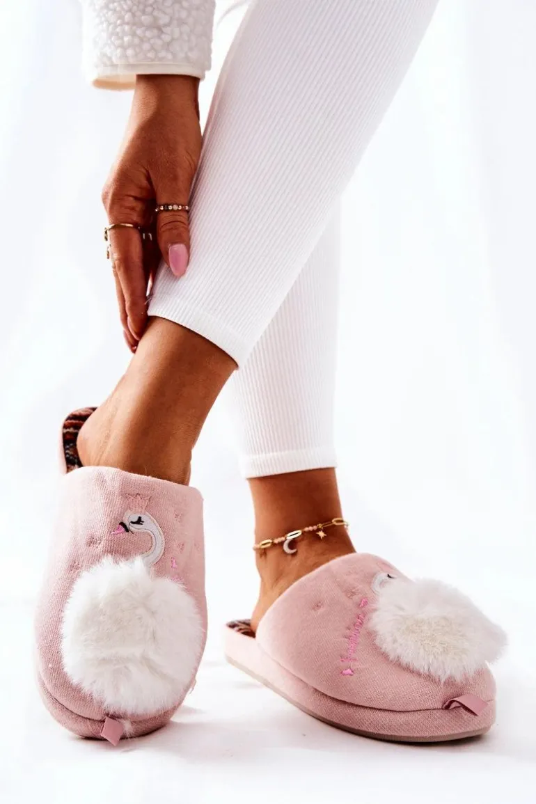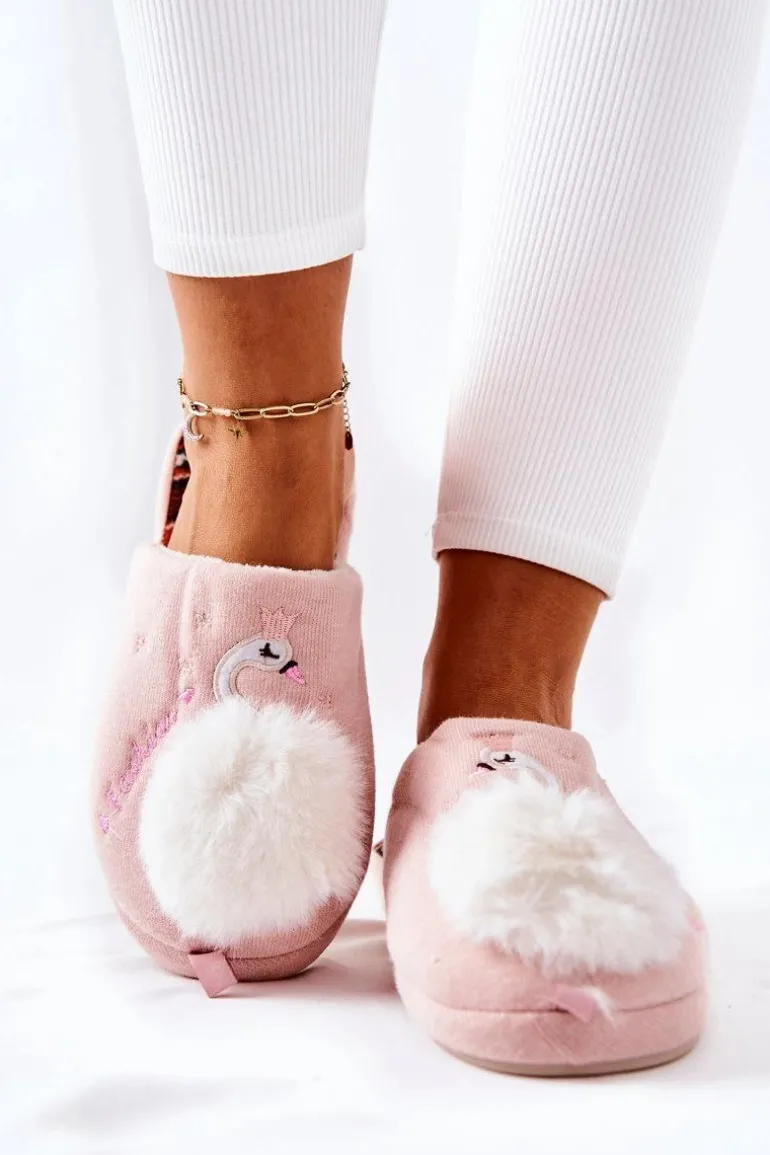 Klasyczne papcie wykonane z materiału. Posiadają ocieplenie w postaci przyjemnego w dotyku koca obuwniczego. Wkładka materiałowa. Z przodu papci widnieje piękny łabędź z futrzanym tułowiem. Posiadają grubą platformę, która świetnie izoluje od zimnego podłoża. Koniecznie musisz je mieć! Przy wyborze rozmiaru prosimy sugerować się tabelą rozmiarów.