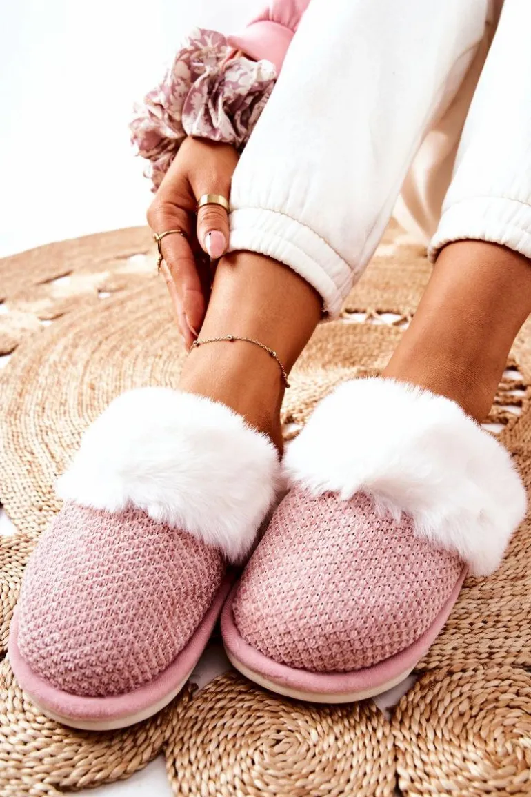 Papcie Ocieplane Z Futerkiem Różowe Flamarin