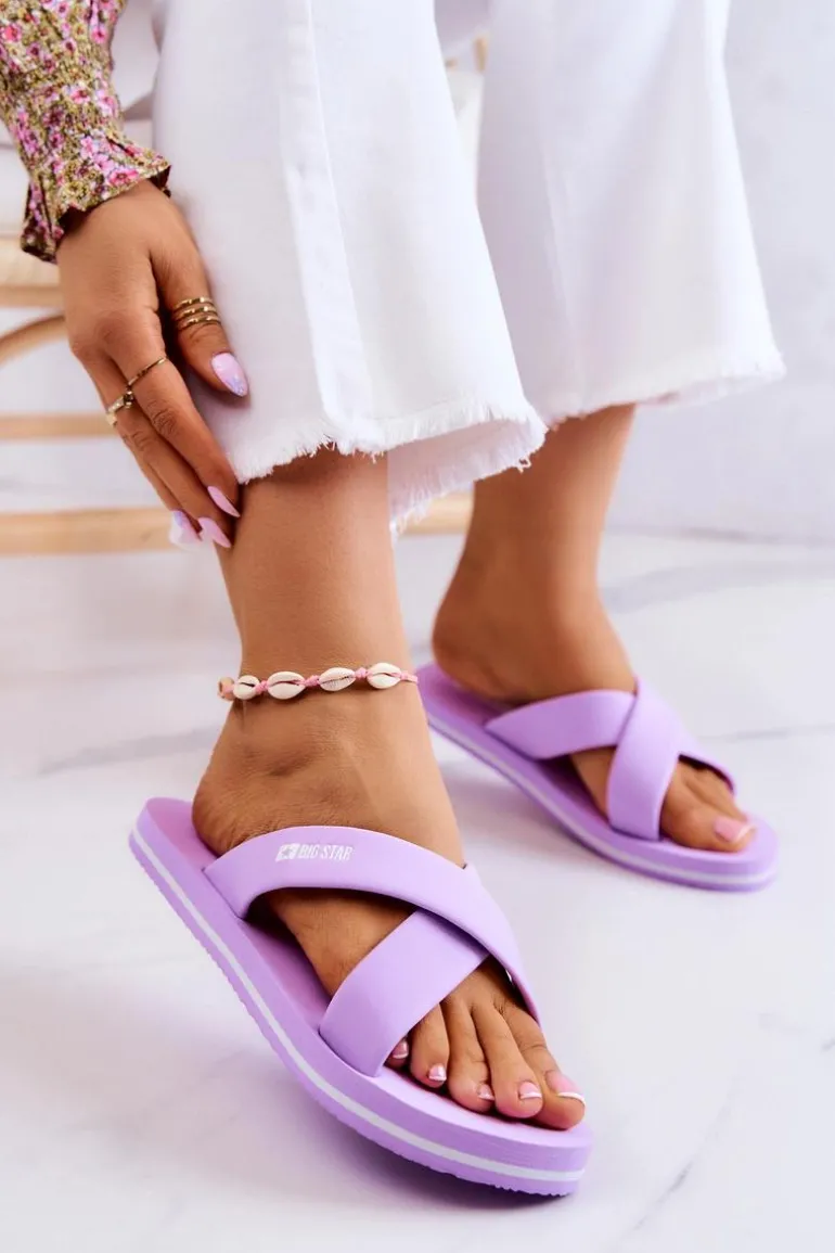 Wsuwane buty to świetna propozycja na lato, jeśli cenisz sobie szybkie i łatwe zakładanie obuwia. Modne oraz wygodne, dzięki piankowej wkładce, która zapewni najwyższy komfort dla Twoich stóp. Ciesz się swobodą ruchów w klapkach wykonanych z lekkiego, piankowego tworzywa. Krzyżowane paski z tłoczonym logo marki Big Star na śródstopiu nadają klapkom casualowy, a zarazem elegancki charakter. Delikatna platforma, która świetnie odizoluje od twardego podłoża. Podczas wyboru rozmiaru prosimy sugerować się tabelą rozmiarów.