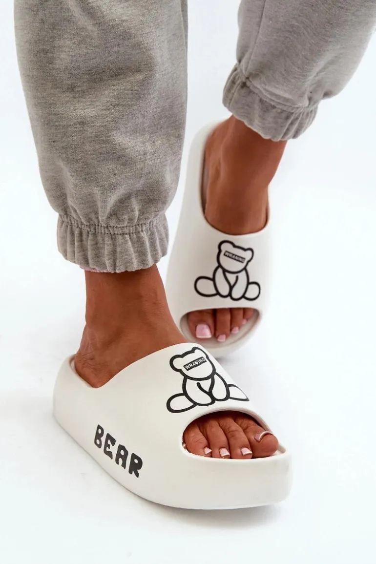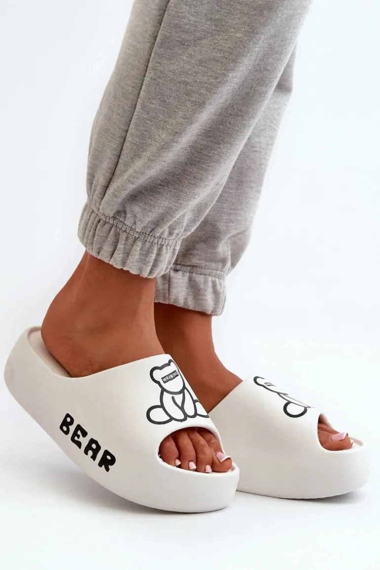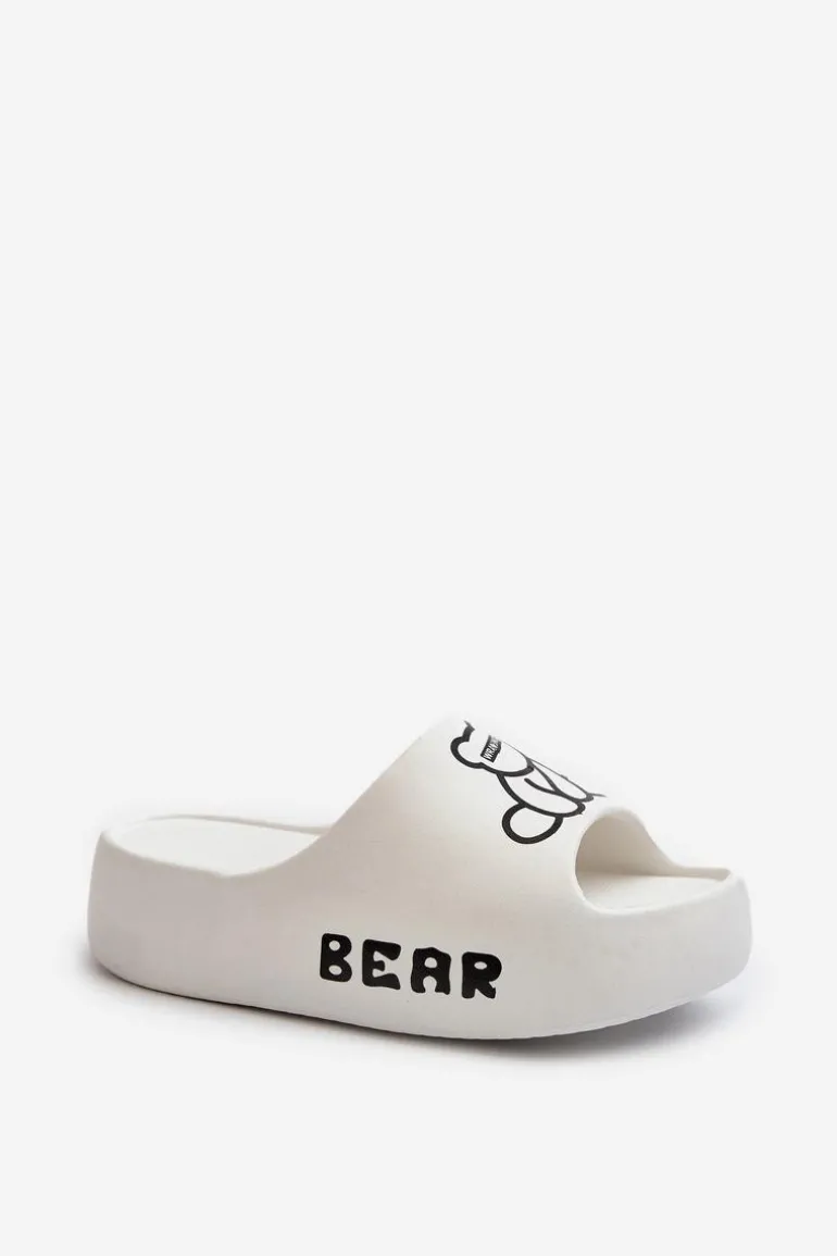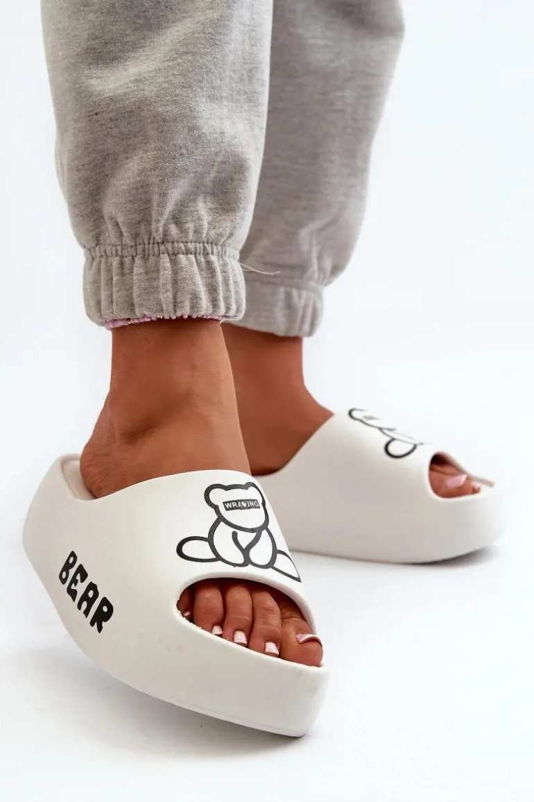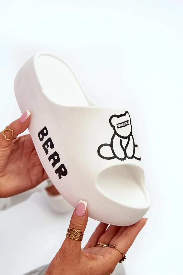 Lekkie damskie klapki na basen wykonane z piankowego tworzywa. Osadzone na masywnej podeszwie. Te urocze klapki zdobi nadruk z motywem misia, który dodaje im wyjątkowego charakteru. Idealne do codziennego użytku na, łączą wygodę i styl w jednym. Przy wyborze rozmiaru prosimy sugerować się tabelą rozmiarów.