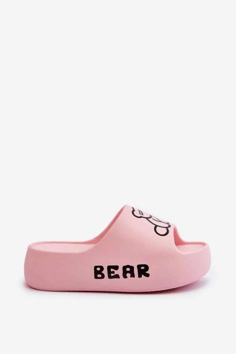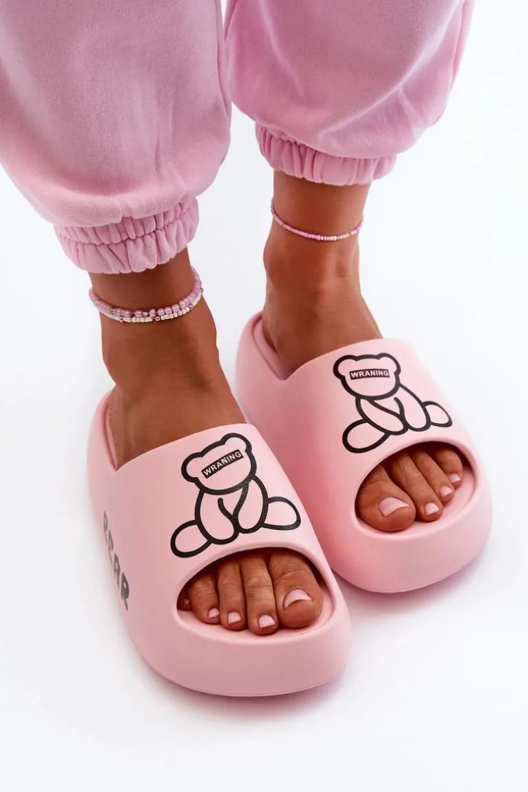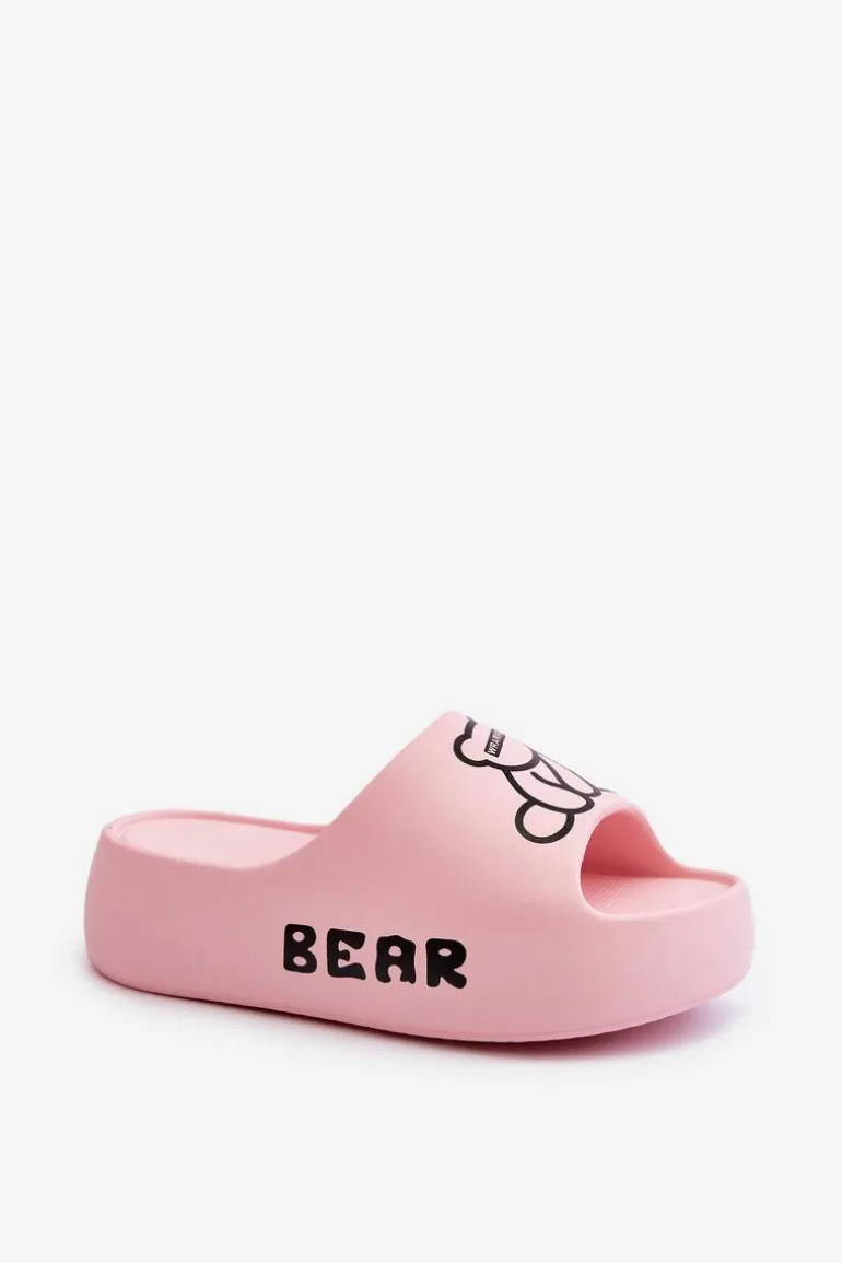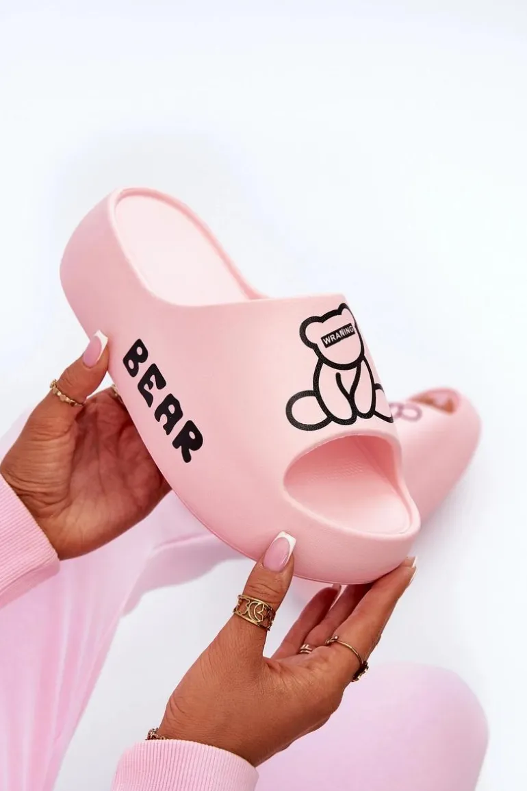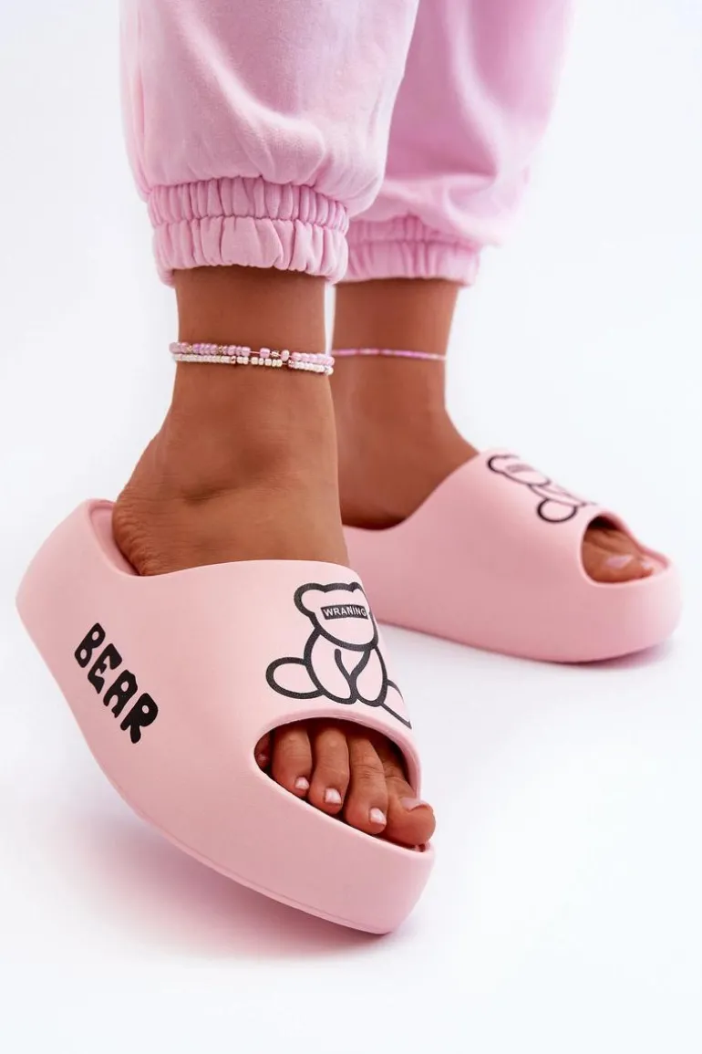 Piankowe Klapki Damskie Na Masywnej Podeszwie Z Misiem Różowe Lamira