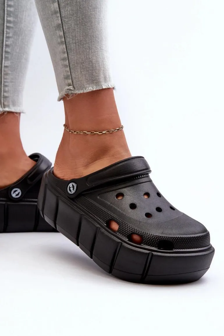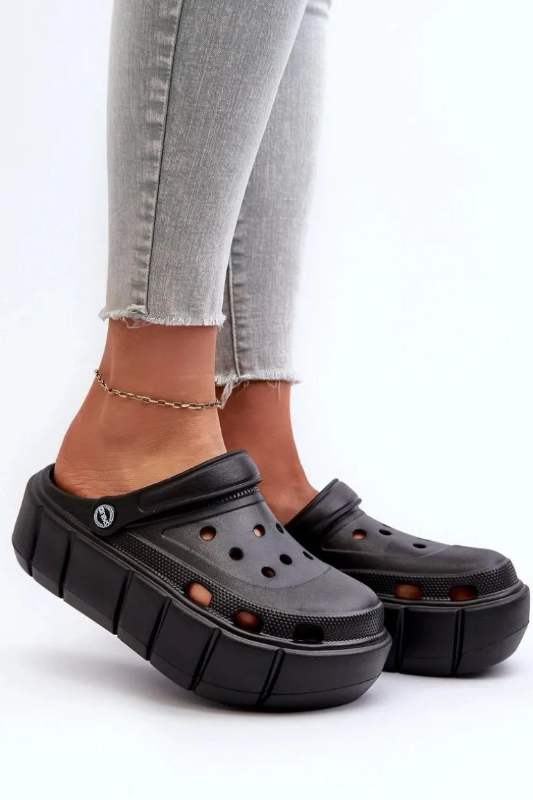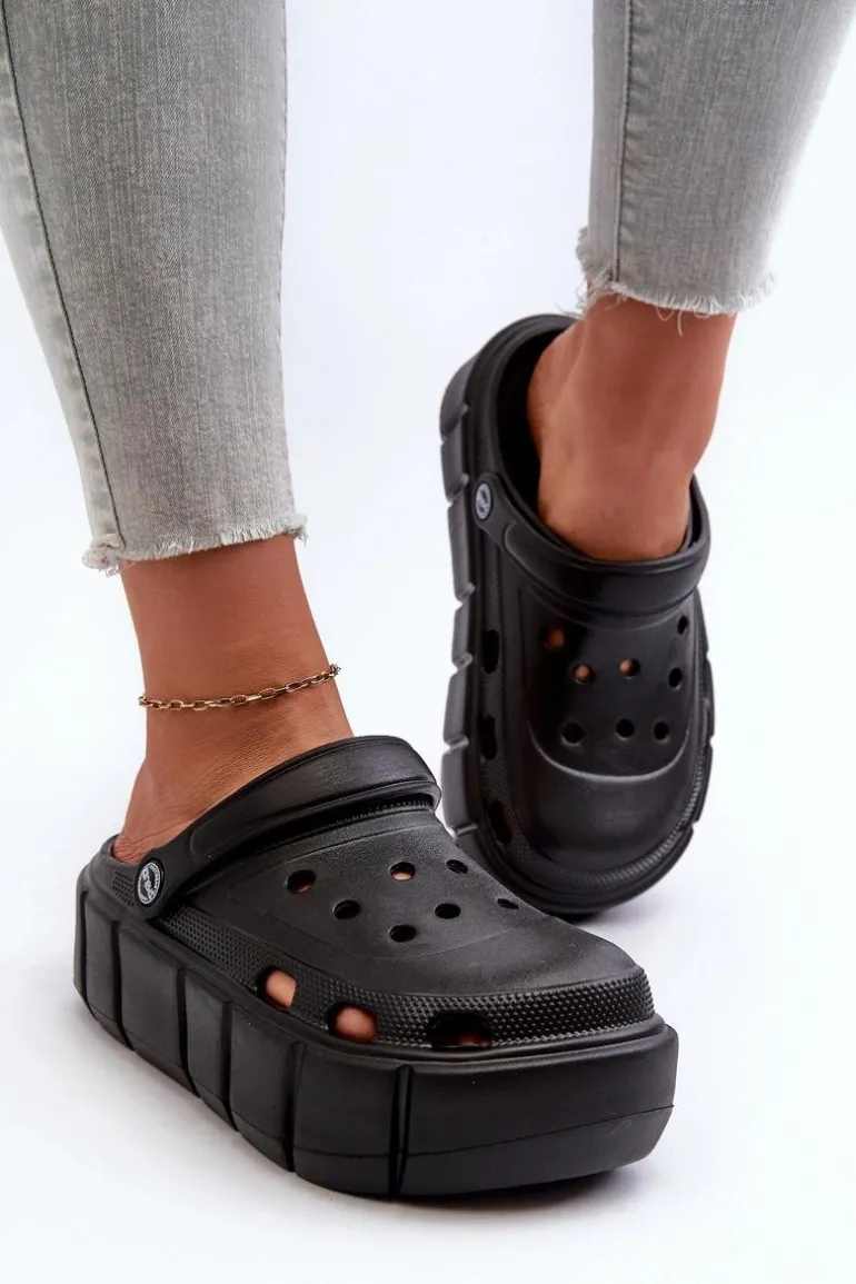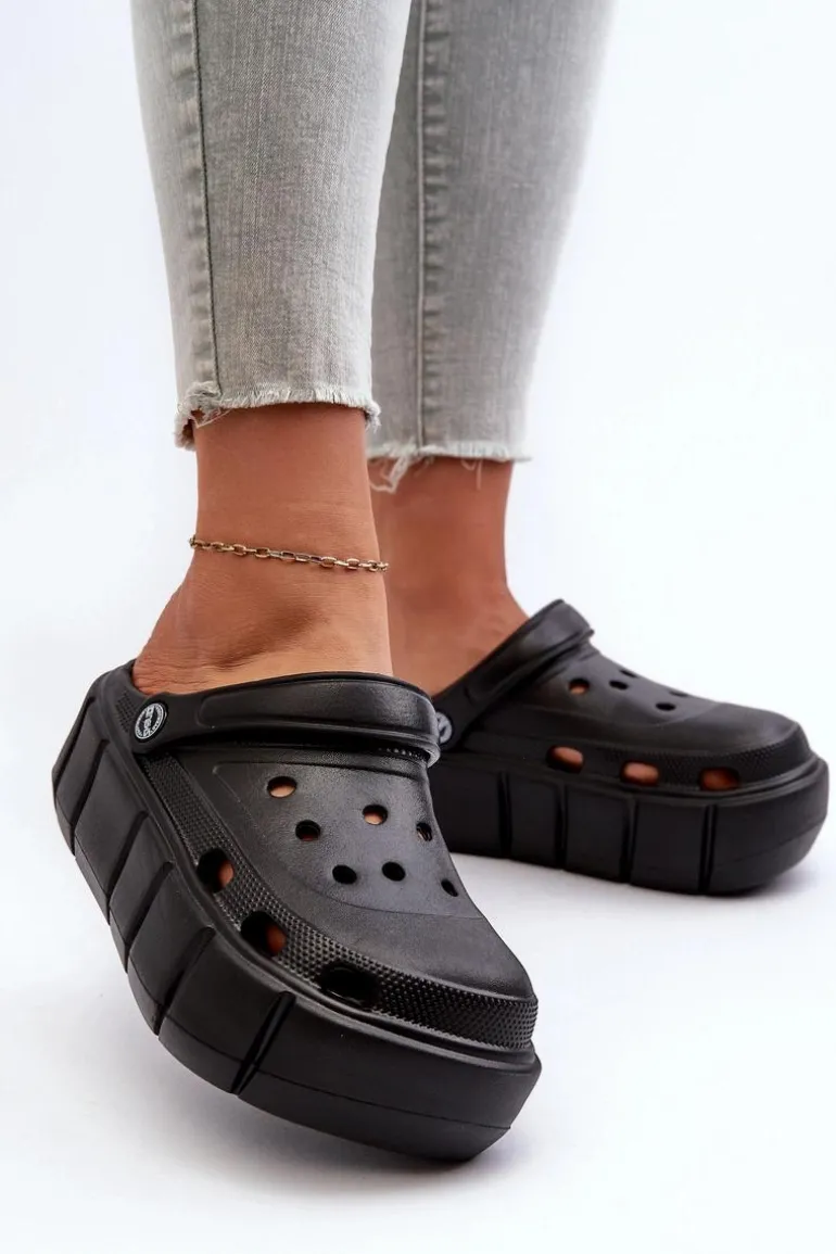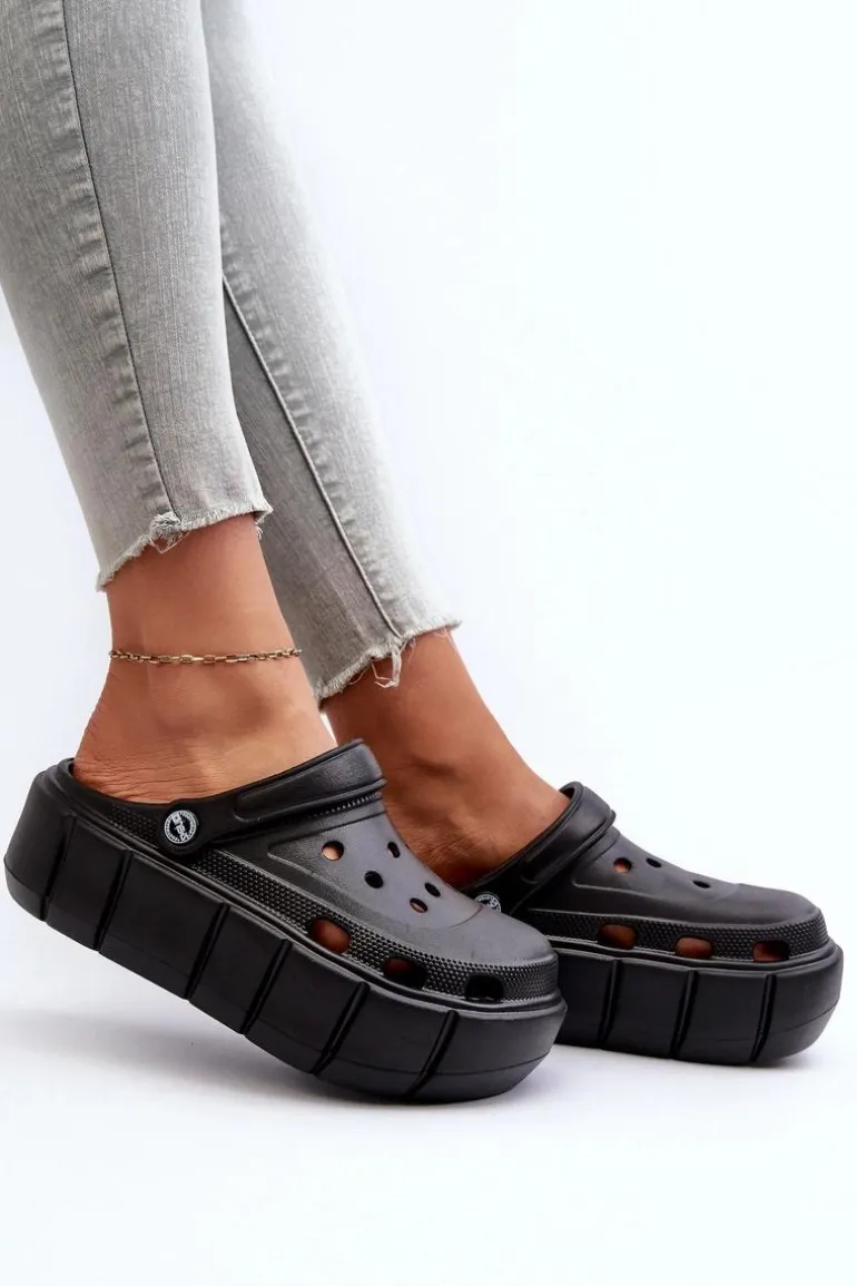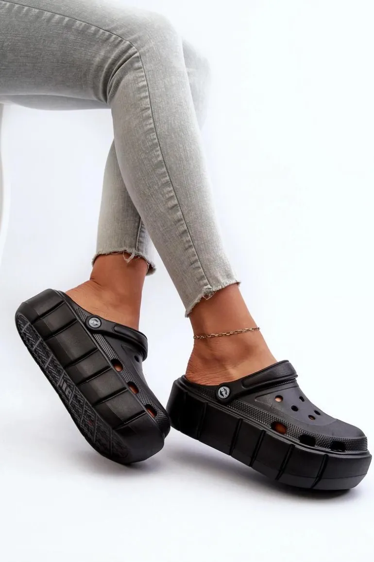 Piankowe Klapki Damskie Na Platformie Czarne Itubia