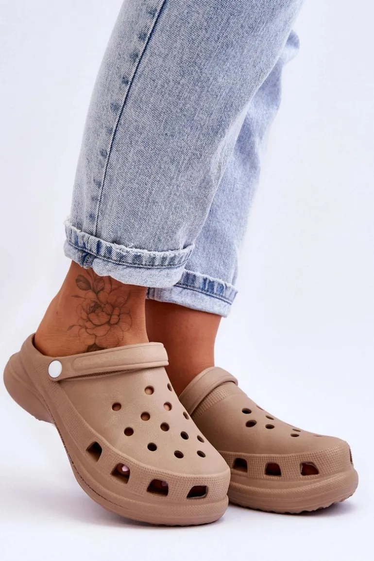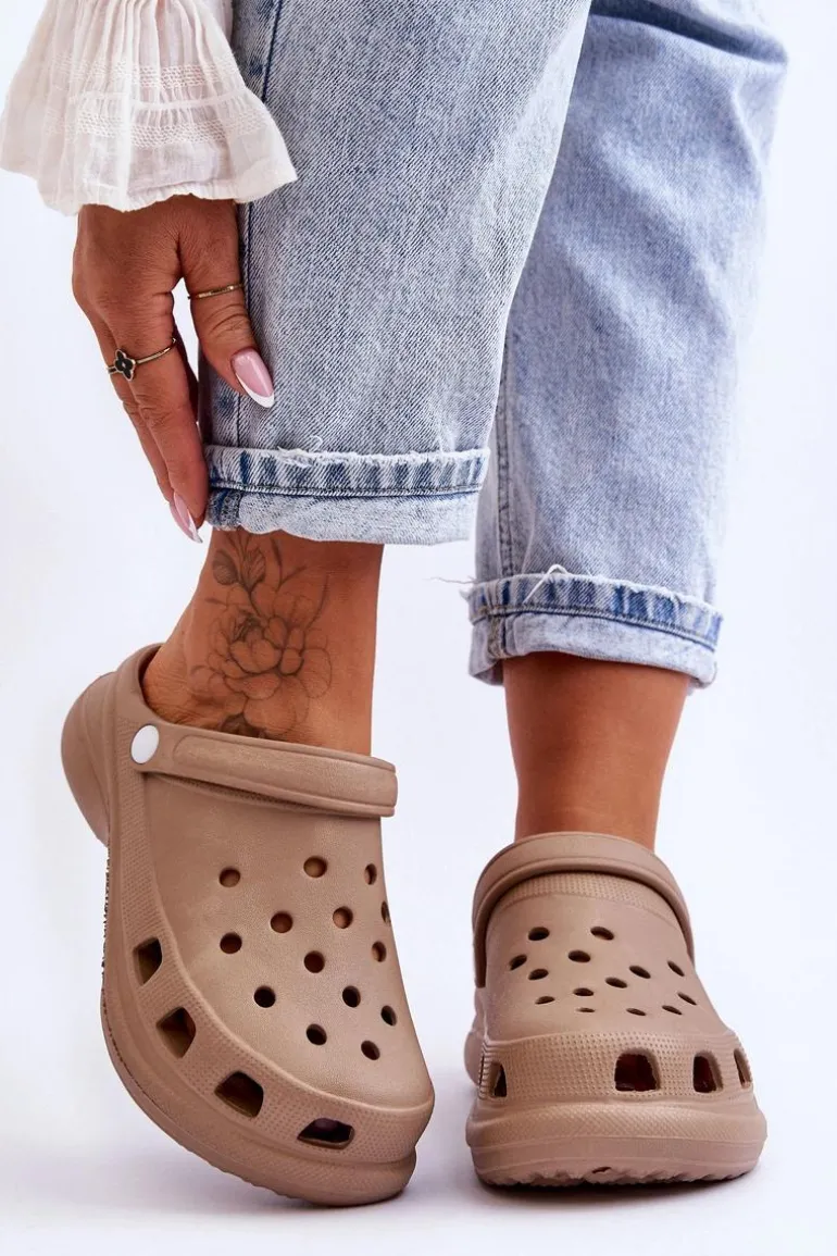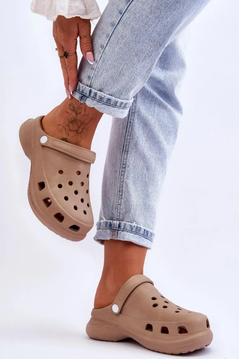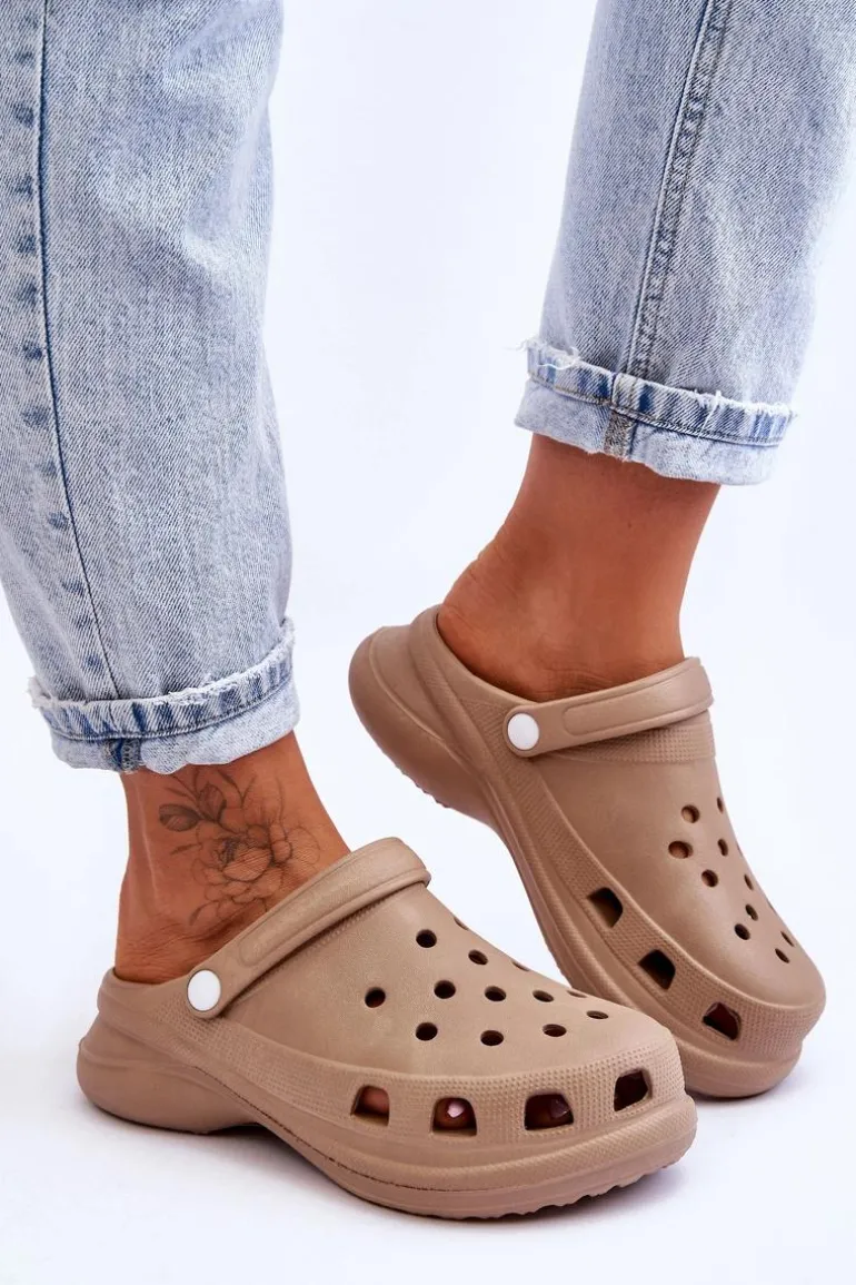 Piankowe Klapki Kroksy Na Masywnej Podeszwie Beżowe Katniss