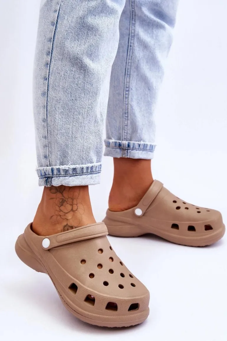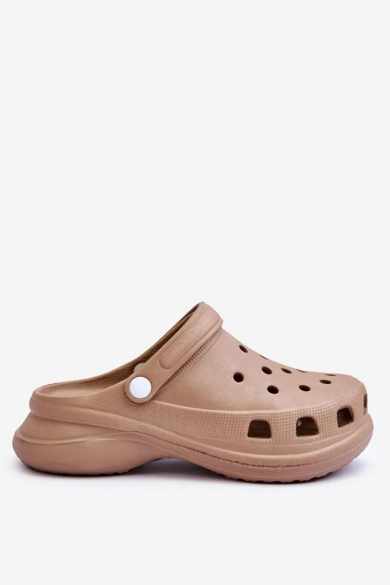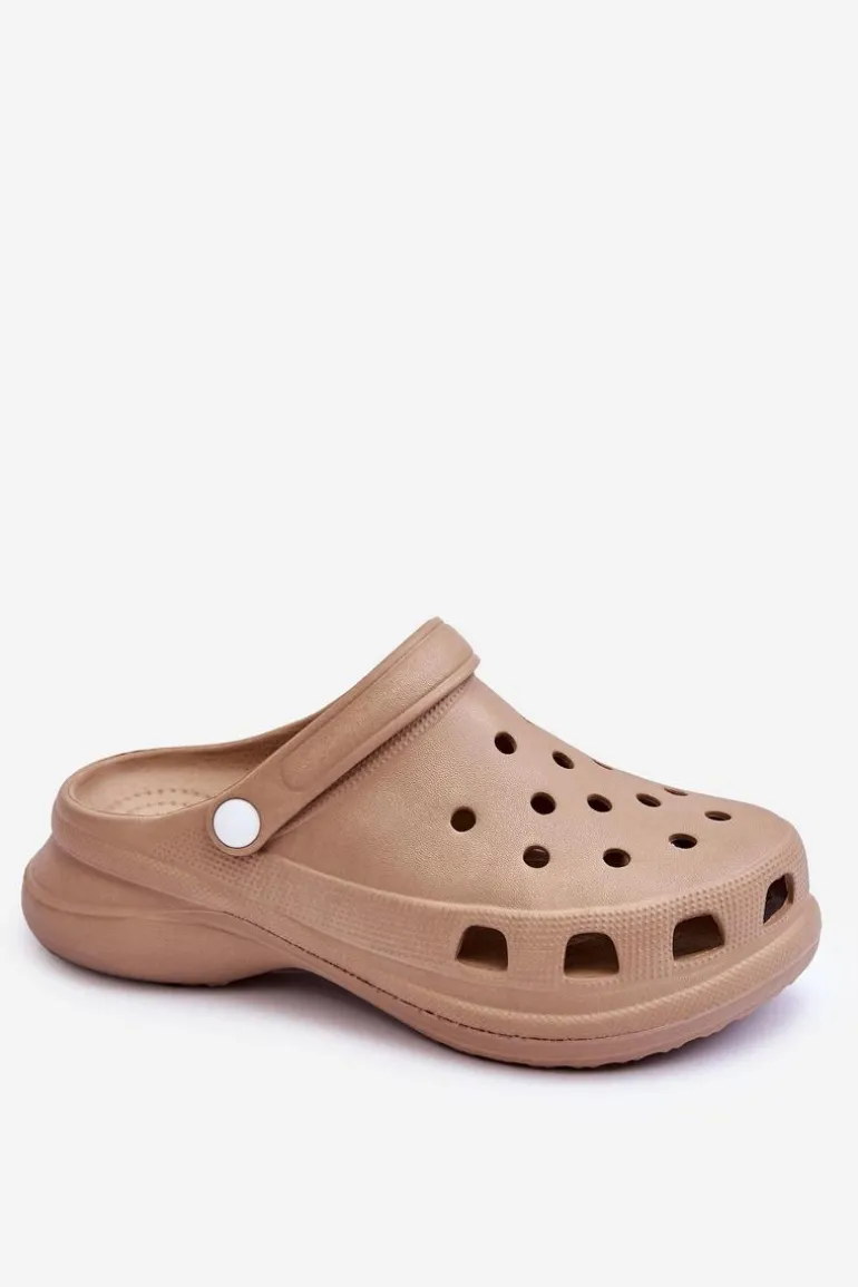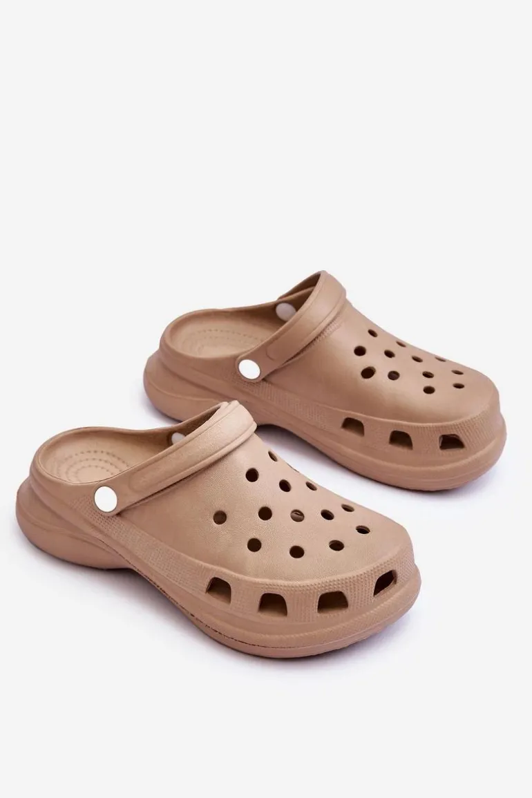 Piankowe Klapki Kroksy Na Masywnej Podeszwie Beżowe Katniss