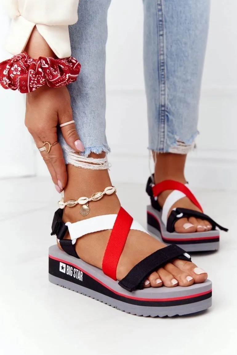Sandały w sportowym stylu od polskiej marki BIG STAR. Buty są bardzo lekkie, zostały wykonane z wysokojakościowego piankowego tworzywa. Dopasowanie do stopy zapewni zapinanie na rzepy. Koniecznie sprawdź całą naszą kolekcję damskich sandałek! Przy wyborze rozmiaru prosimy sugerować się tabelą rozmiarów.