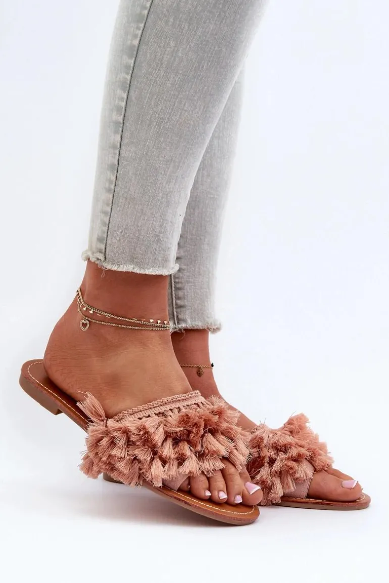 Klapki na płaskim obcasie z frędzlami to doskonały wybór dla kobiet, które szukają stylowego i wygodnego obuwia na letnie dni. Frędzle dodają im oryginalności, a płaski obcas gwarantuje komfort noszenia przez cały dzień. Te klapki będą doskonałym uzupełnieniem letnich stylizacji! Przy wyborze rozmiaru prosimy sugerować się tabelą rozmiarów.