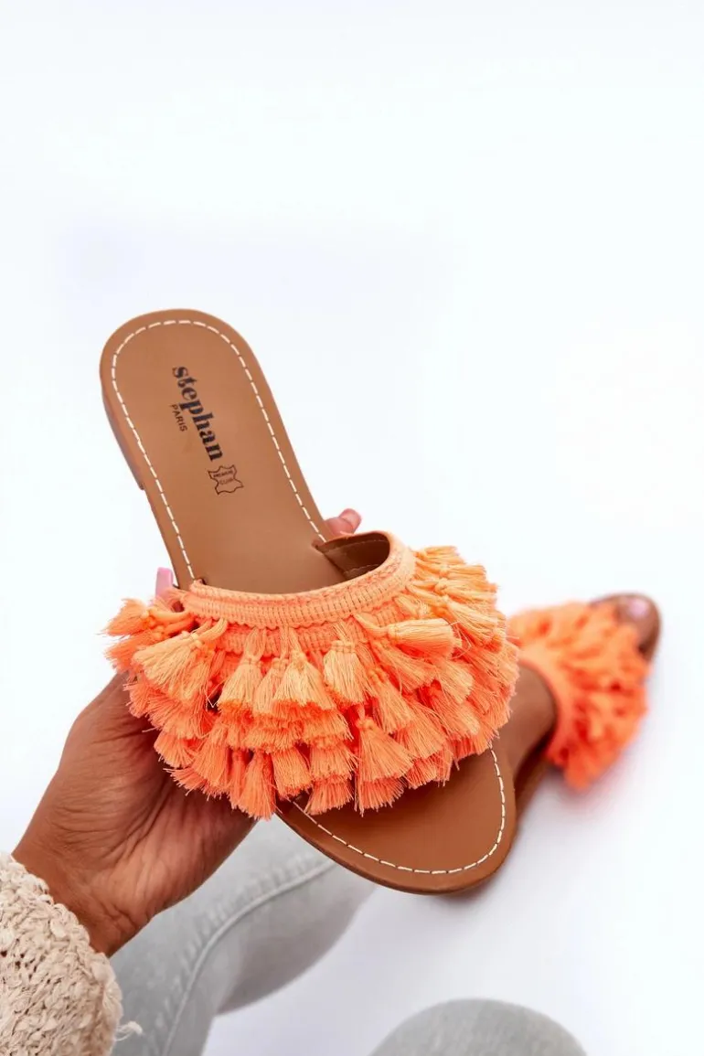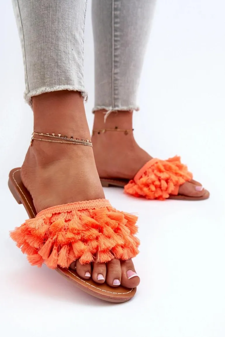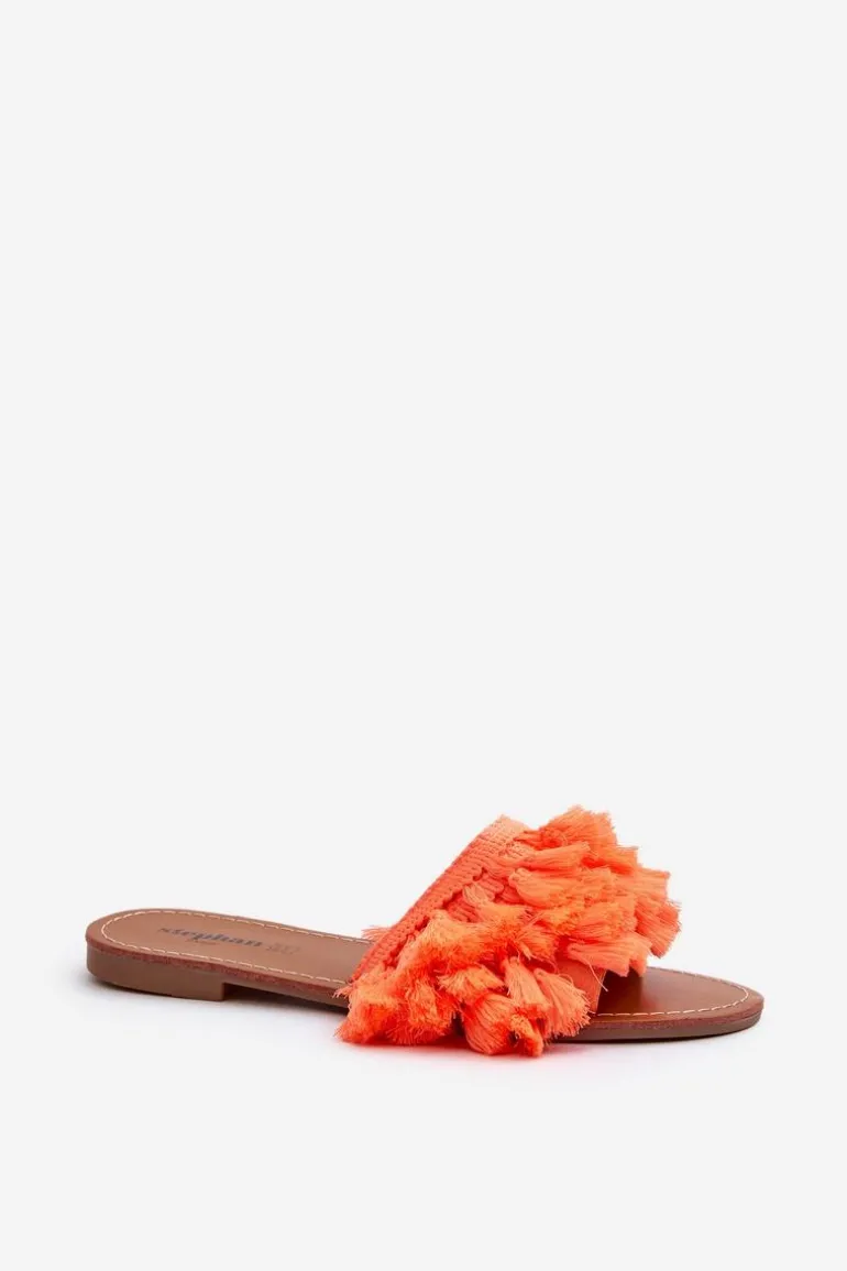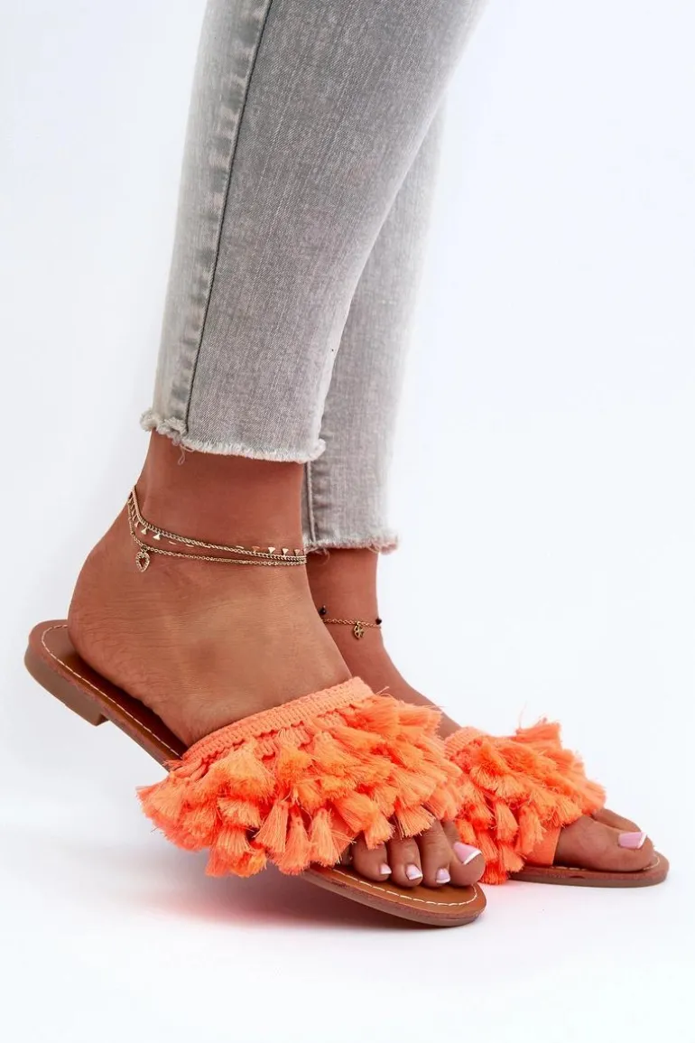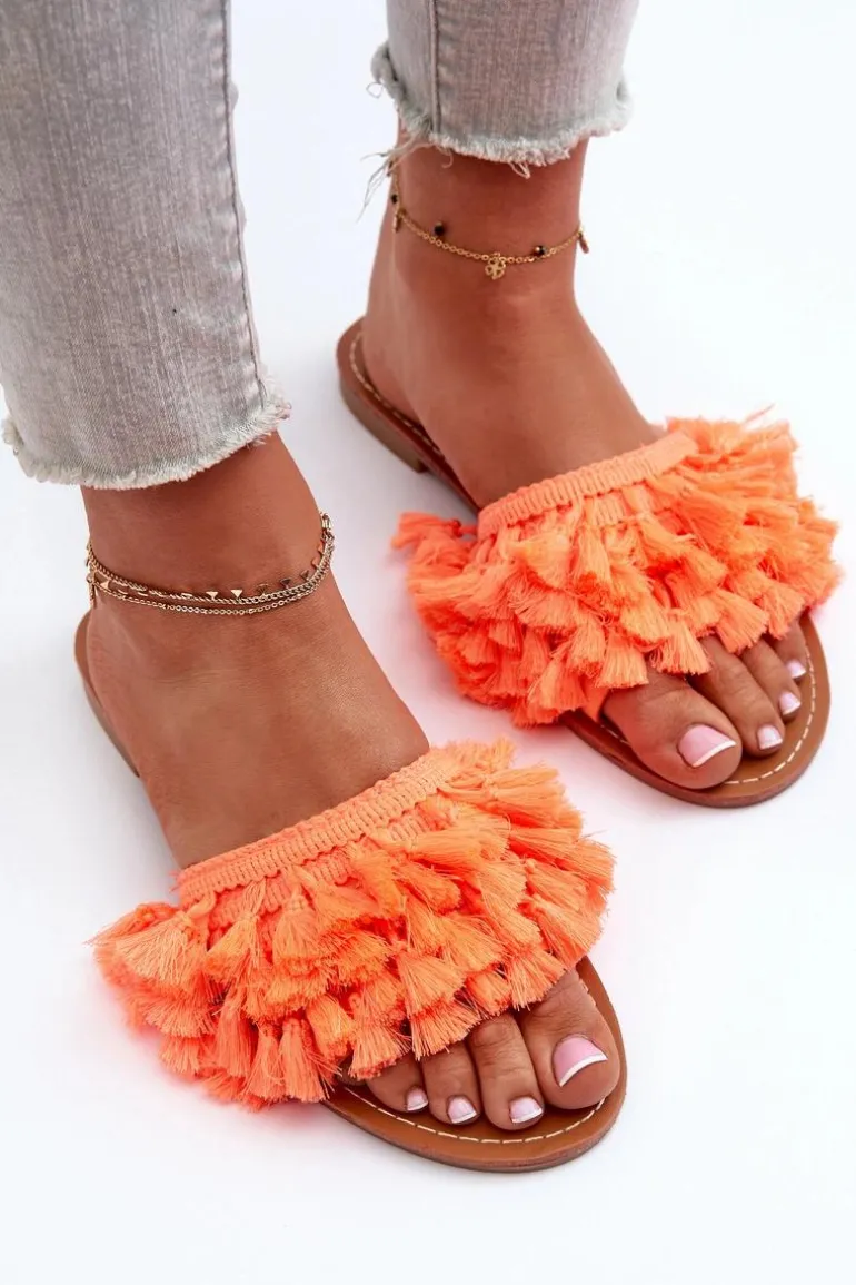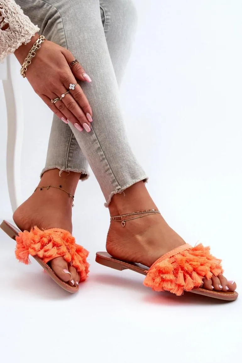 Płaskie Klapki Damskie Z Frędzlami Pomarańczowe Rialle