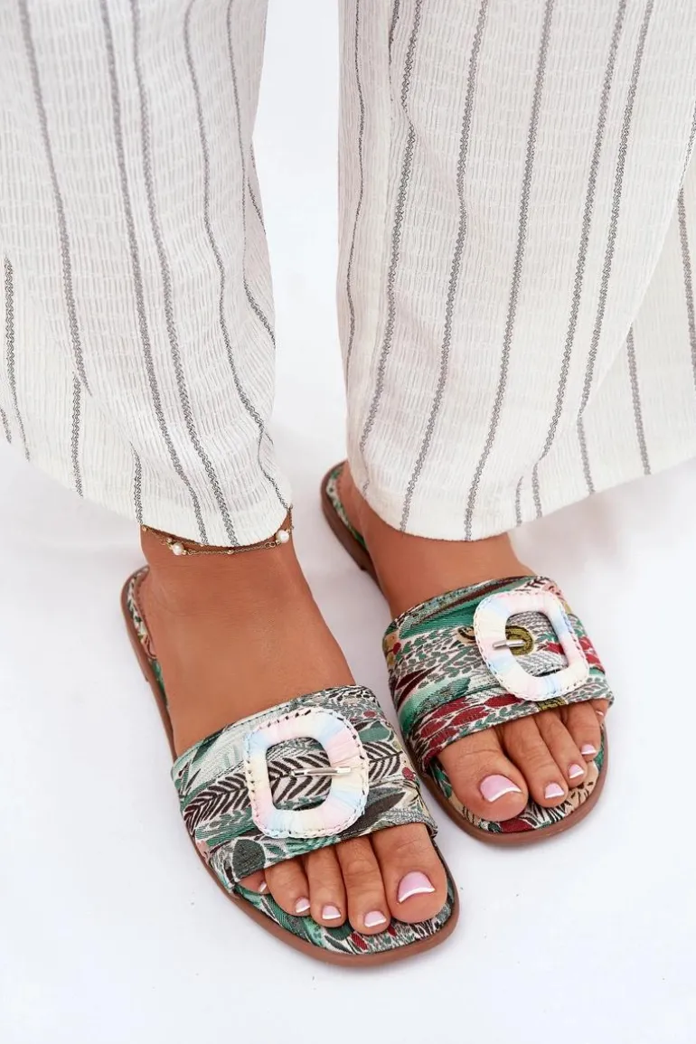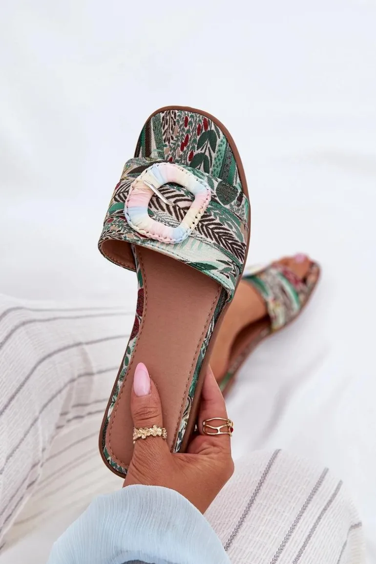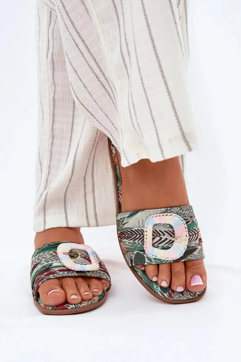 Płaskie Klapki Damskie Z Ozdobną Klamrą Multikolor Clariola