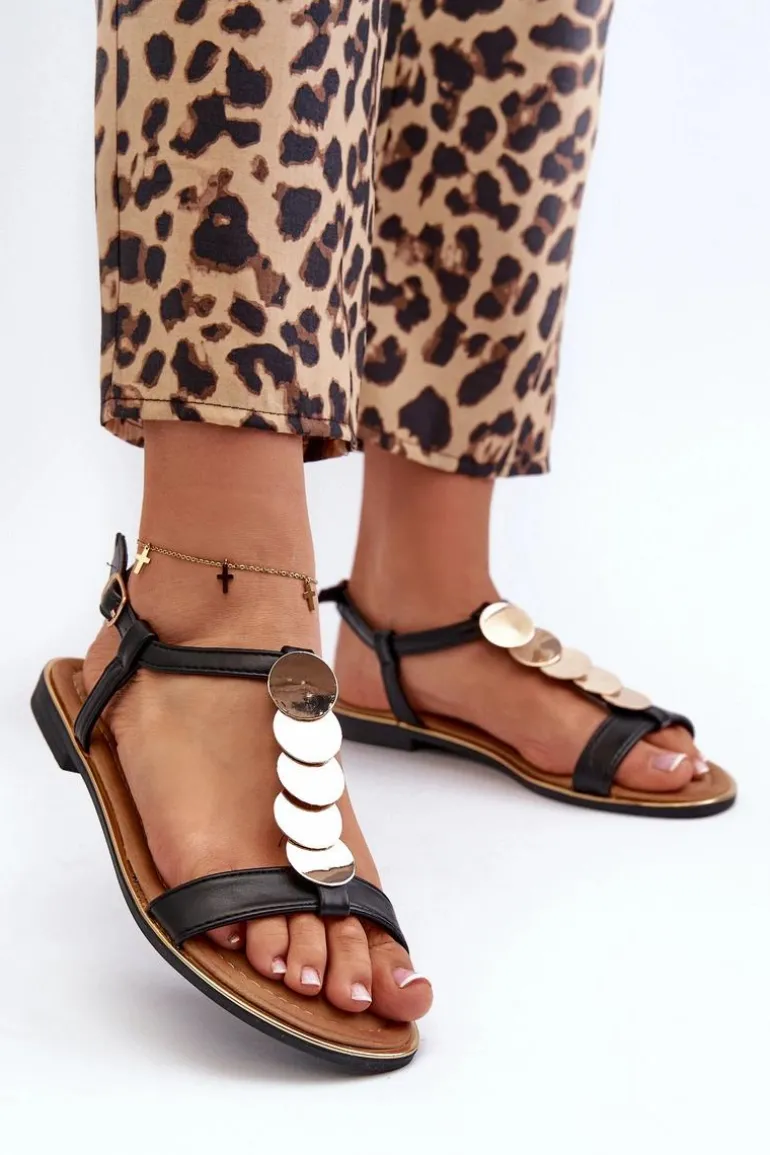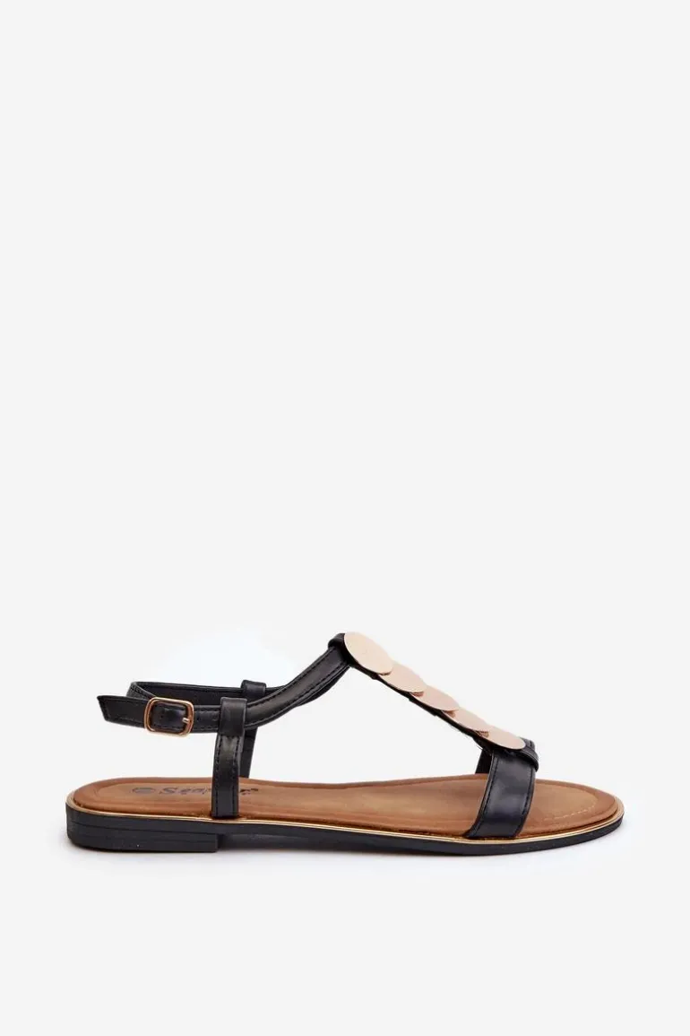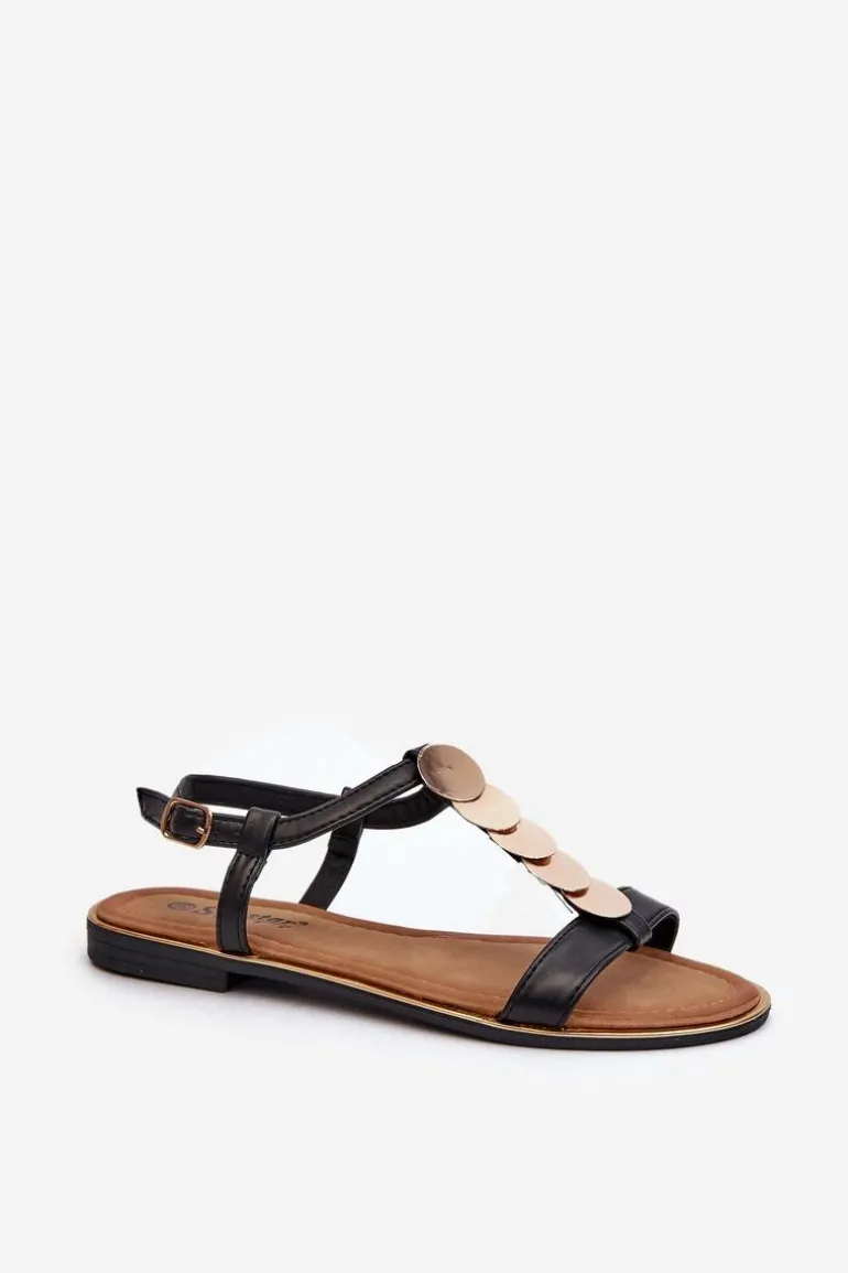 Płaskie Sandały Damskie Z Eko Skóry Czarne Jeritellia