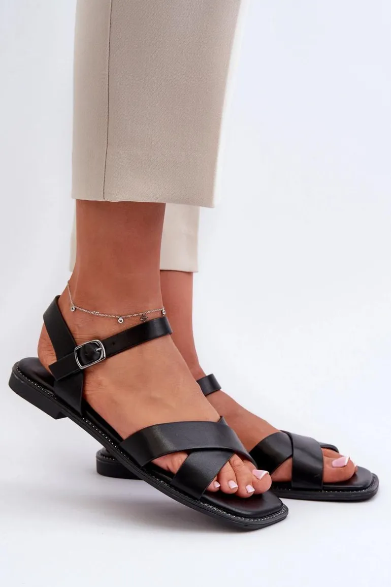 Sandały damskie wykonane z wysokiej jakości eko skóry, idealne na ciepłe dni. Z przodu znajdują się dwa przeplatające się paski, które dodają im oryginalnego i modnego wyglądu. Zapięcie na regulowany pasek ze sprzączką zapewnia idealne dopasowanie do stopy. Doskonałe na letnie spacery, spotkania ze znajomymi czy codzienne wyjścia. Przy wyborze rozmiaru prosimy kierować się tabelą rozmiarów.