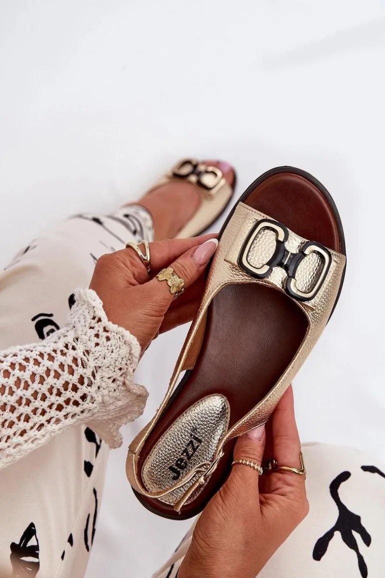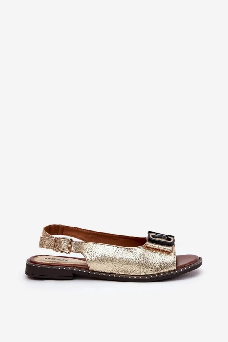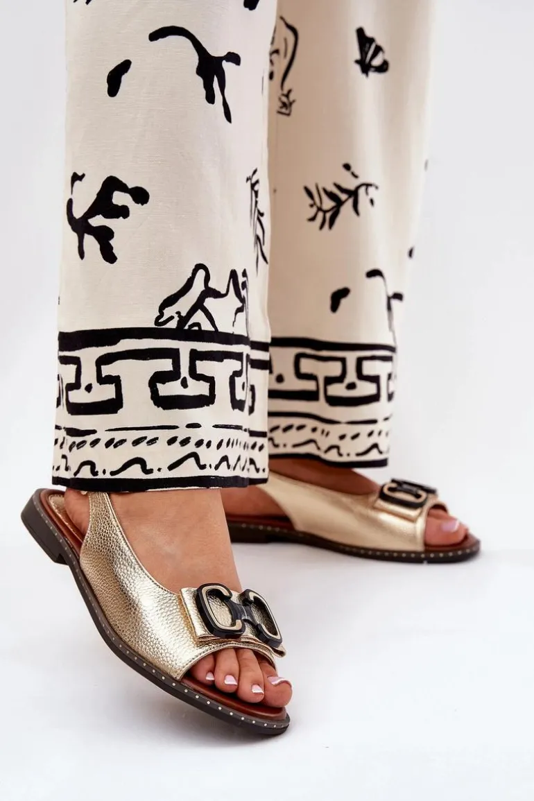 Płaskie Sandały Z Ozdobą Eko Skórzane Złote Lilria