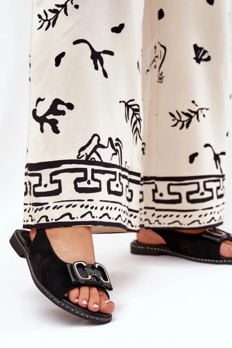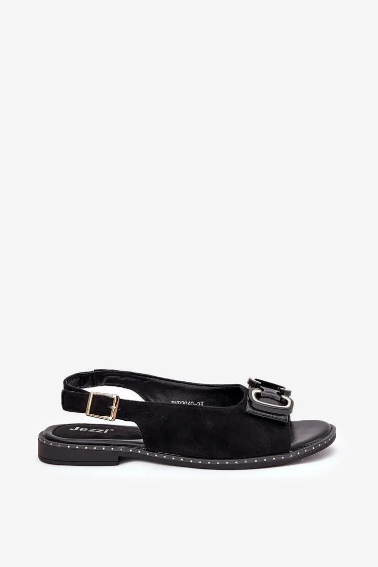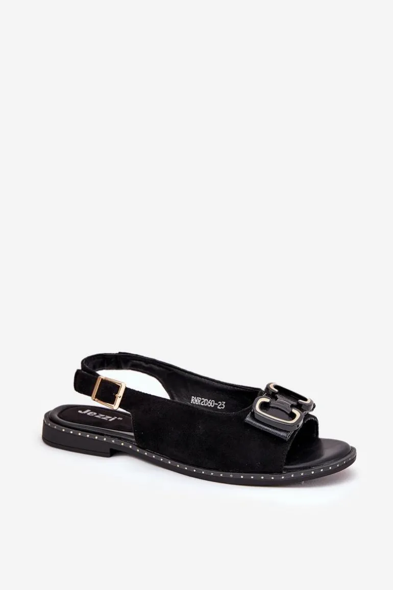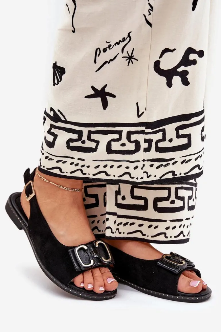 Płaskie Sandały Z Ozdobą Eko Zamszowe Czarne Lilria