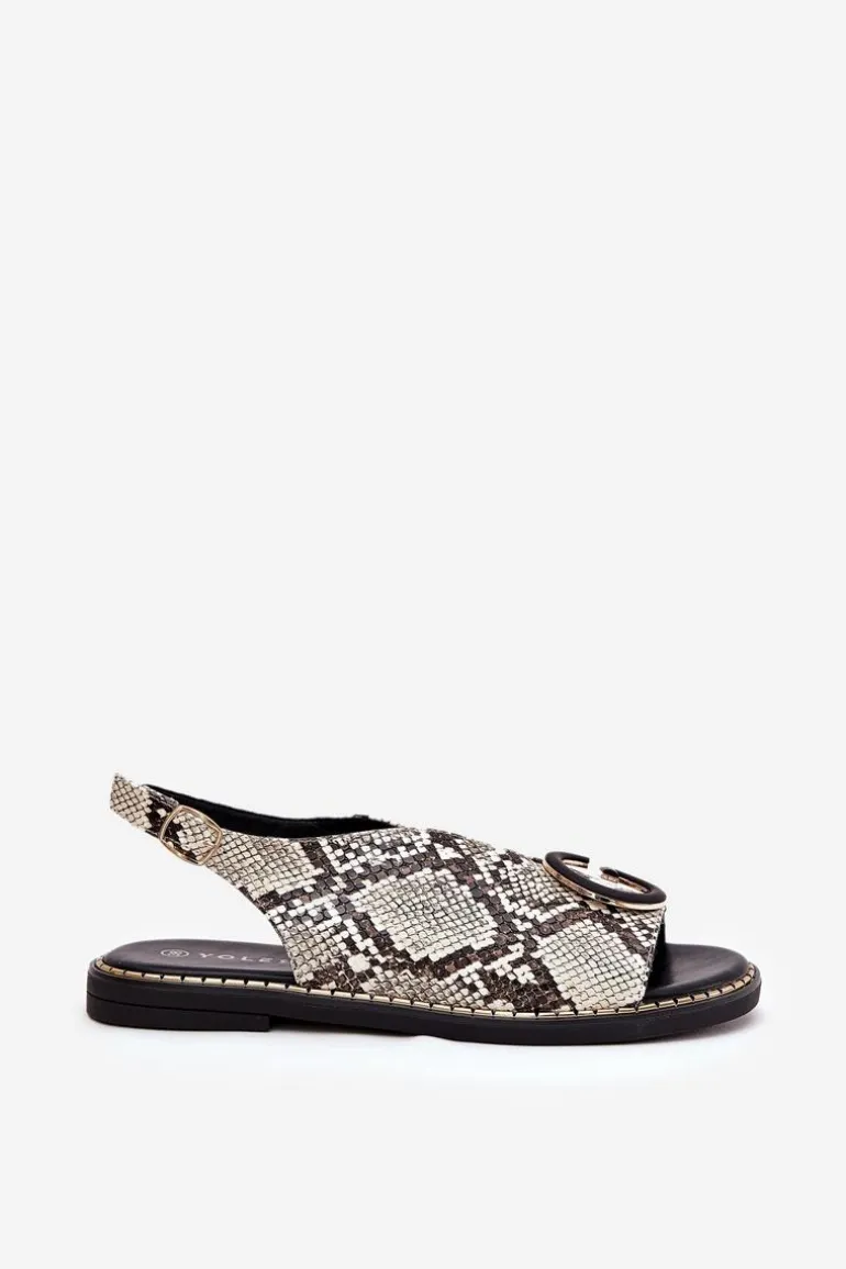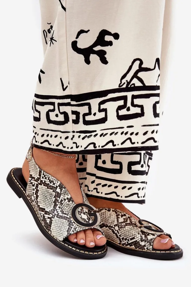 Płaskie Sandały Z Ozdobą Wężowy Wzór Beżowo-Brązowe Haliones