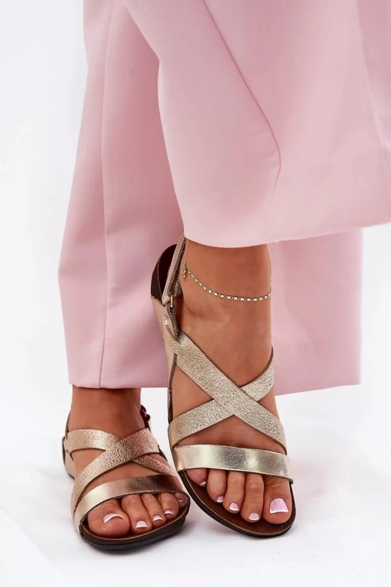 Damskie sandały z naturalnej skóry to doskonały wybór na ciepłe dni. Osadzone na płaskim obcasie, zapewniają wygodę i komfort przez cały dzień. Model zapinany na rzep, z trzema paskami z przodu, łączy klasyczny styl z elegancją. Te sandały będą idealnym dopełnieniem letnich stylizacji, doskonale komponując się zarówno z sukienkami, jak i spodniami.Przy wyborze rozmiaru prosimy kierować się tabelą rozmiarów.