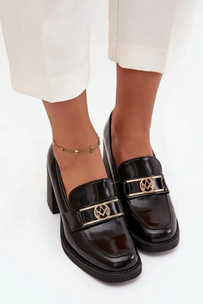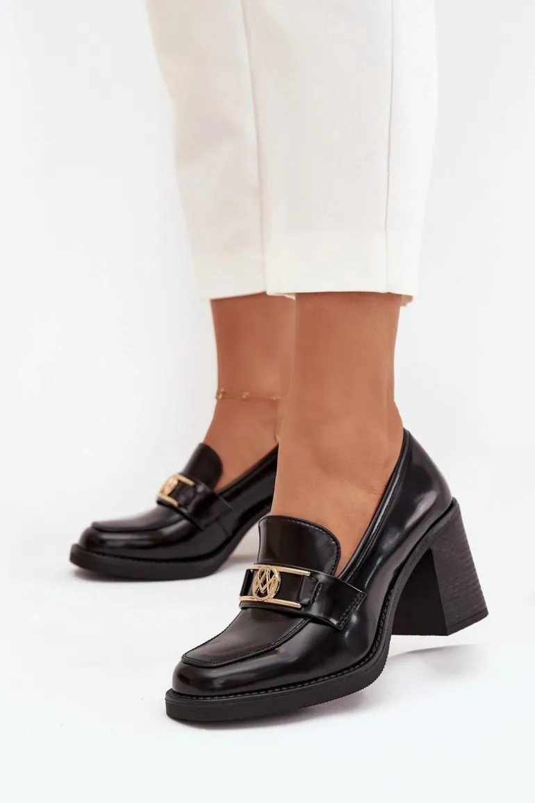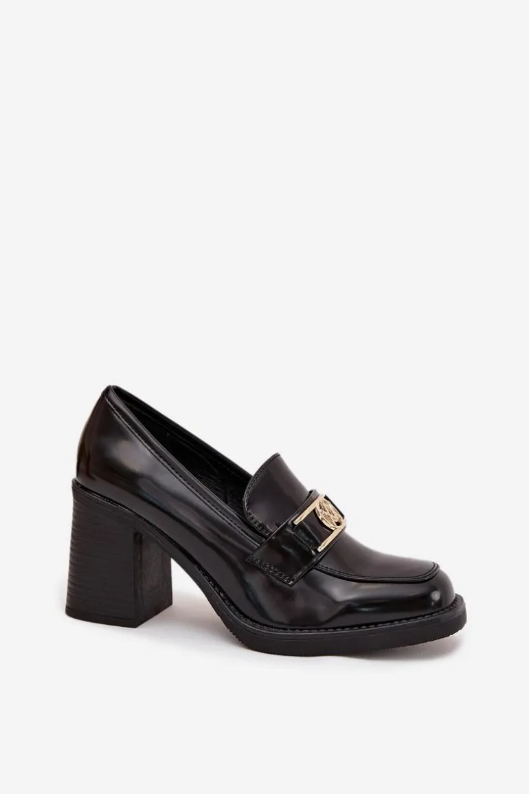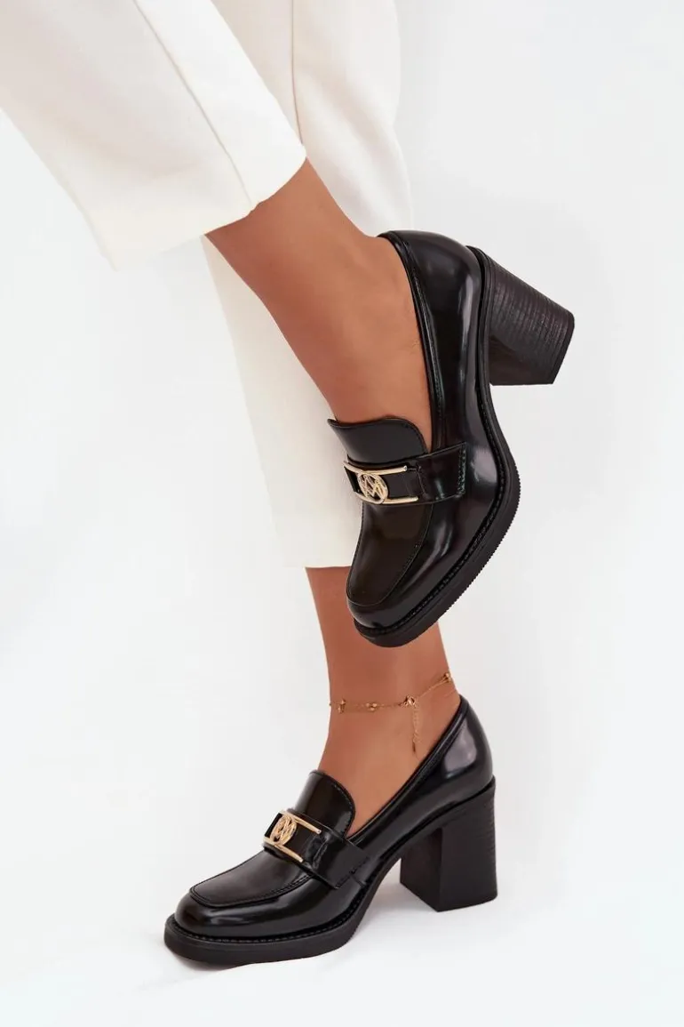 Półbuty Damskie Na Słupku Ze Złotym Detalem Czarne Privelle
