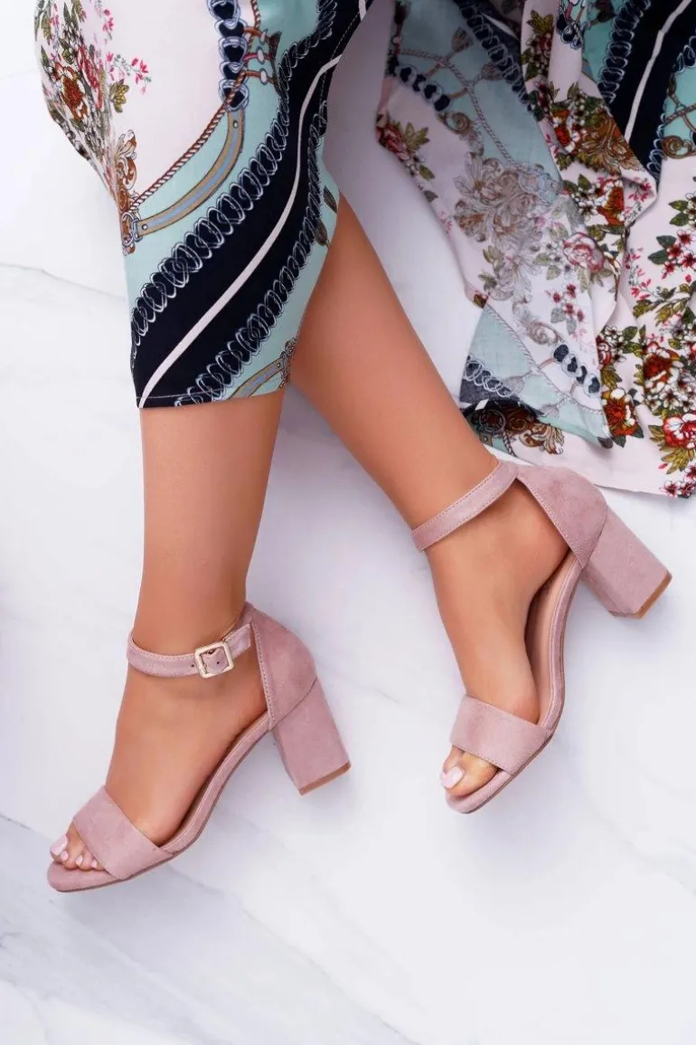 Różowe Damskie Sandały Na Słupku Zamsz NewGenua