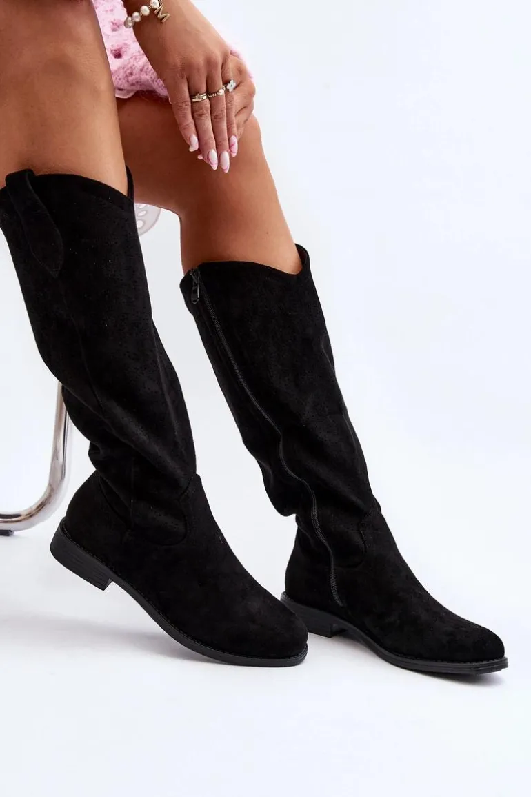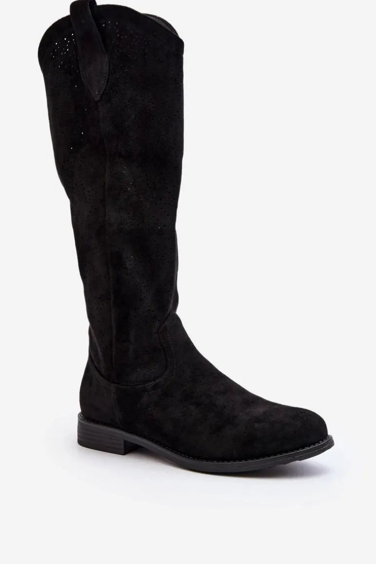 Ażurowe kozaki damskie idealnie dopełnią niemalże każdą codzienną stylizację! Wykonane z eko zamszu. Osadzone na płaskim, stabilnym obcasie. Noski zaokrąglone. Cholewka przed kolano, zapinana na zamek. Dodatkowo model ten posiada usztywniany zapiętek. Koniecznie powinnaś je mieć! Przy wyborze rozmiaru prosimy sugerować się tabelą rozmiarów.