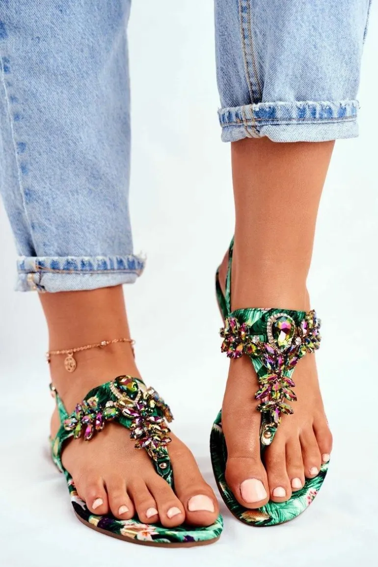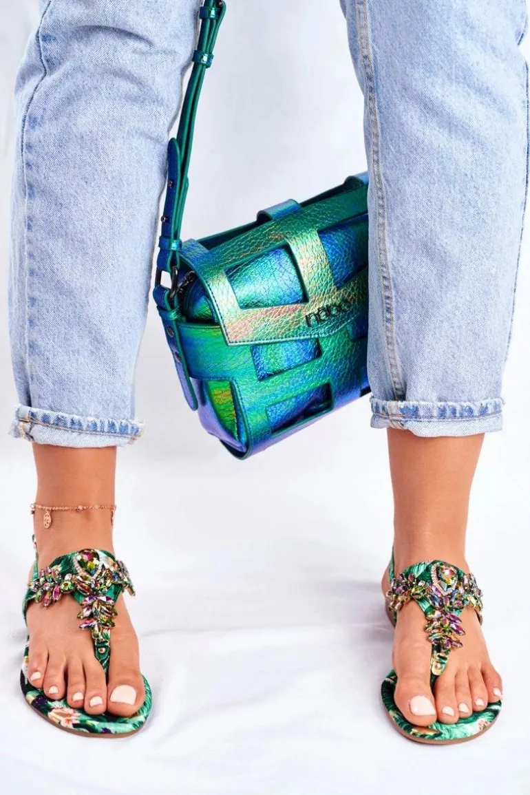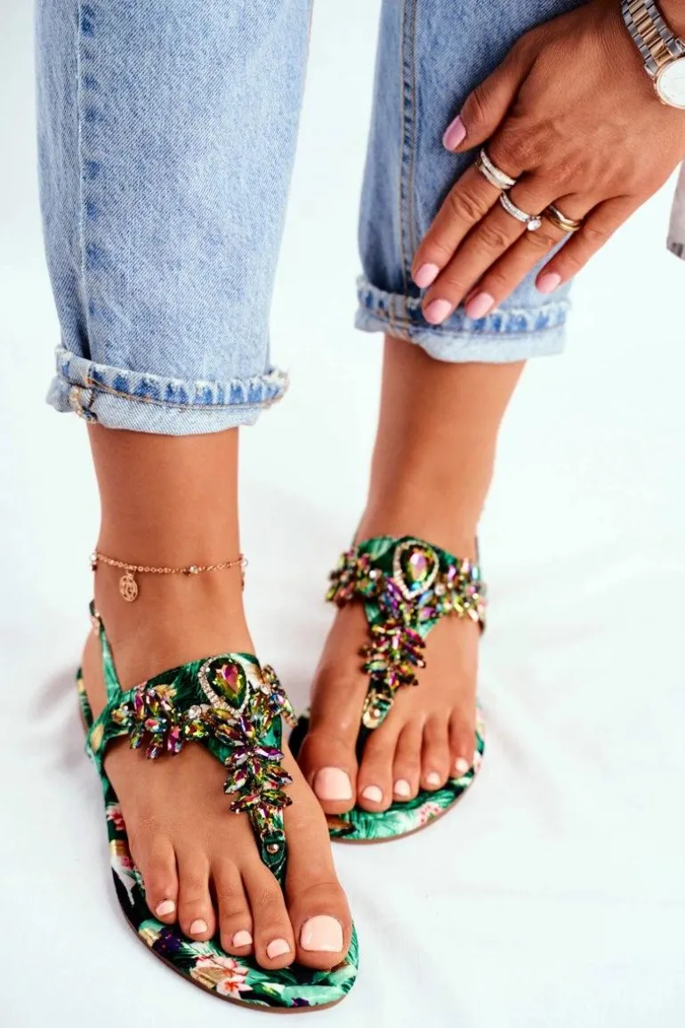 Sandałki Damskie Eleganckie Japonki Kryształki Zielone Under Control