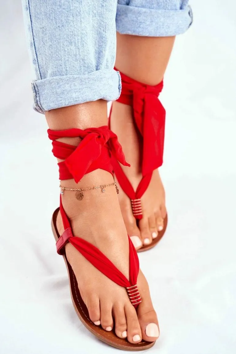 Sandałki Damskie Japonki Wiązane Czerwone Derryl