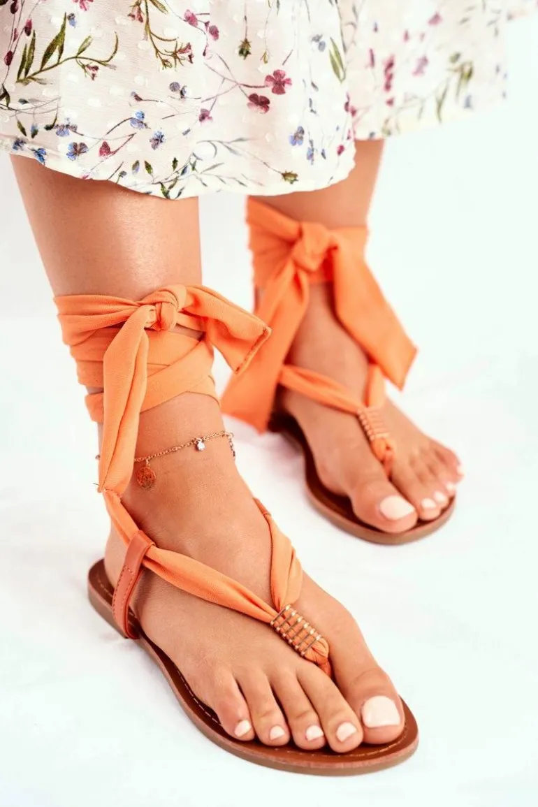 Sandałki Damskie Japonki Wiązane Pomarańczowe Derryl