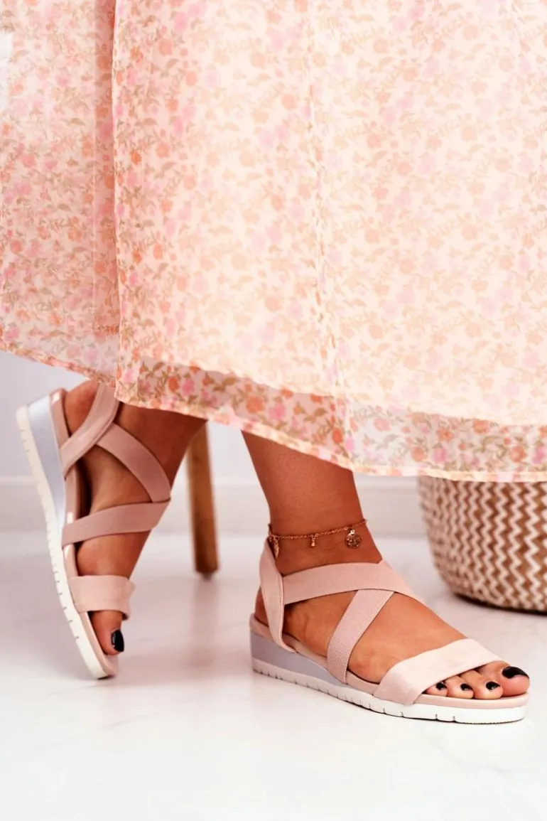 Sandałki Damskie Na Koturnie Beżowe Wsuwane Harper