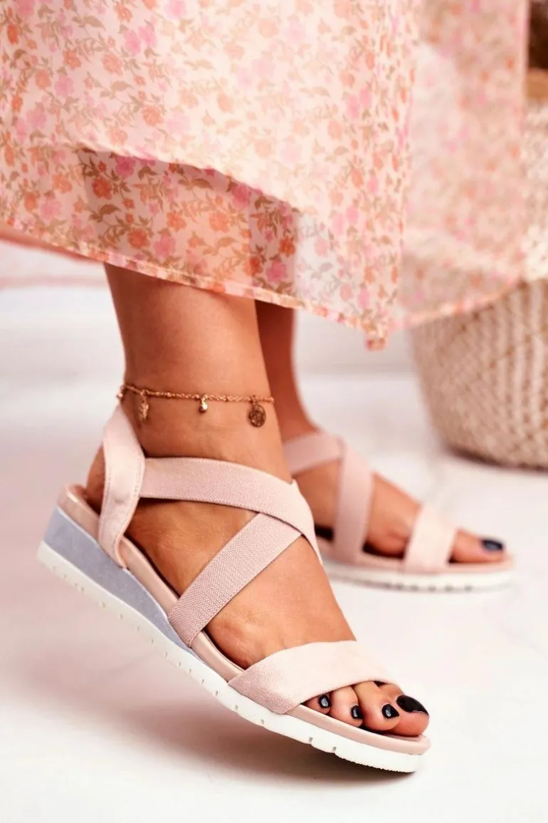Pragniesz mieć w garderobie nieco wyższe sandały, które nie będą obcierały i męczyły Twojej stopy? Oto one! Część wierzchnia została wykonana z niezwykle miękkiego materiału, aby ograniczyć ryzyko powstawania otarć i odcisków do minimum! Już nie stracisz ani jednej minuty na zakładanie butów – wystarczy, że wsuniesz stopę. Sandałki posiadają dwie szerokie gumki, które krzyżują się na kostce, by przytrzymywać buta. Wewnętrzna część buta została wykonana ze skóry ekologicznej, co umożliwi szybkie czyszczenie obuwia. Jeśli często jesteś w biegu i szukać wygody to nie zwlekaj i zamów właśnie te buty! Koniecznie sprawdź jeszcze inne kolory tego modelu. Przy wyborze rozmiaru prosimy sugerować się tabelą rozmiarów.