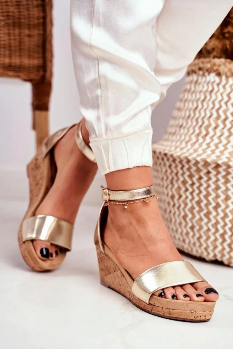 Sandałki Damskie Na Koturnie Złote MarryMe