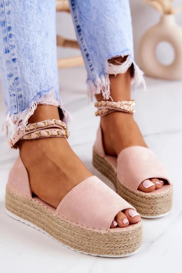 Sandałki Espadryle Na Platformie Różowe Jeannie