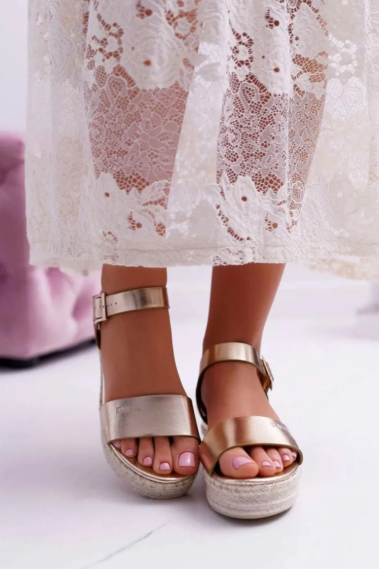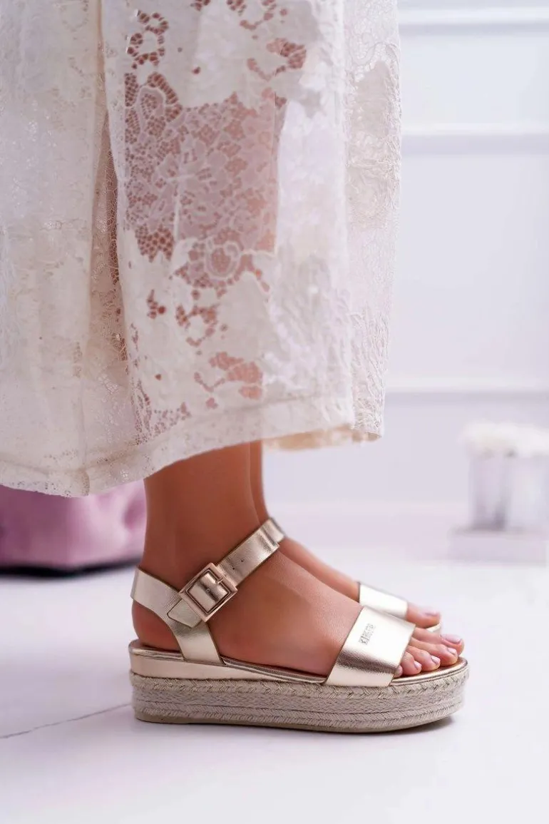 Sandały Damskie Big Star Na Platformie Złote DD274742