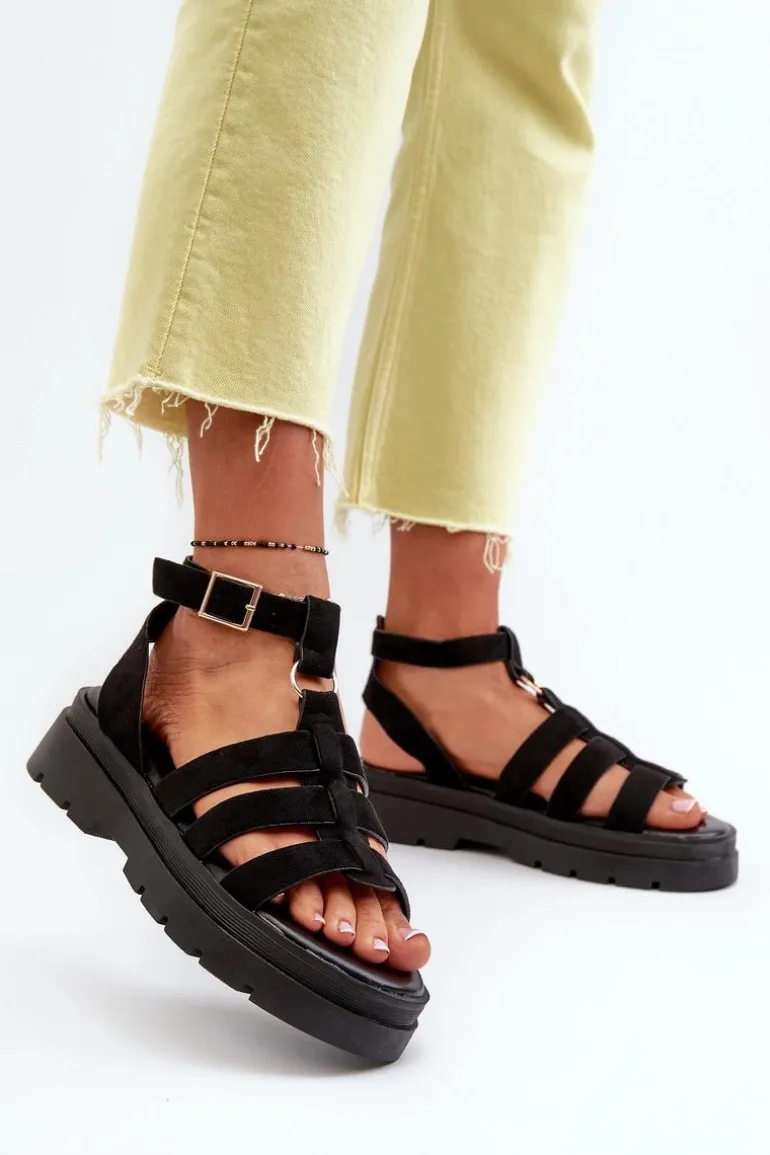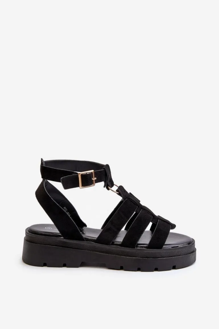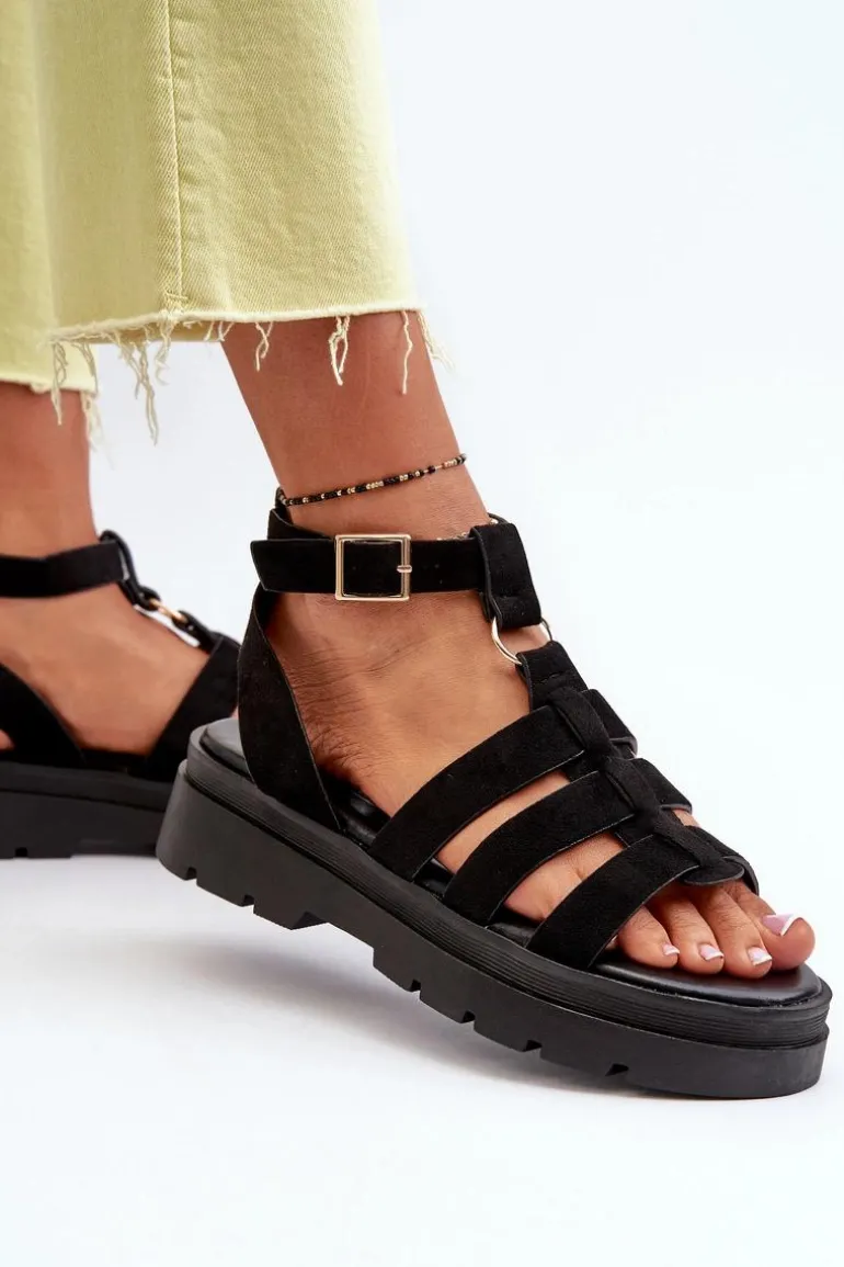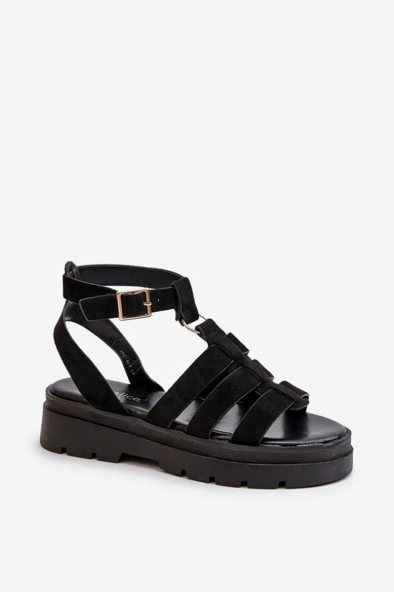Sandały damskie w stylu gladiatorek. Wykonane z eko zamszu. Regulowany pasek ze sprzączką zapewnia idealne dopasowanie do stopy, zapewniając jednocześnie komfort i stabilność podczas noszenia. Idealne do letnich stylizacji! Przy wyborze rozmiaru prosimy kierować się tabelą rozmiarów.