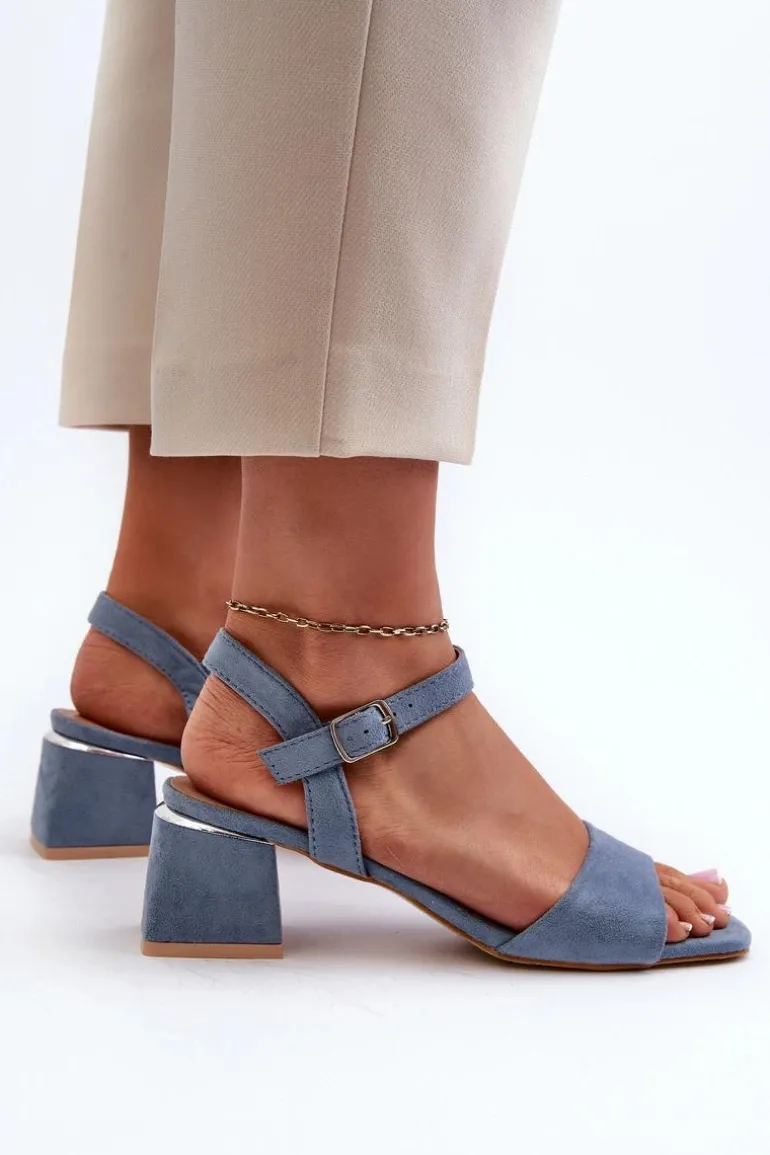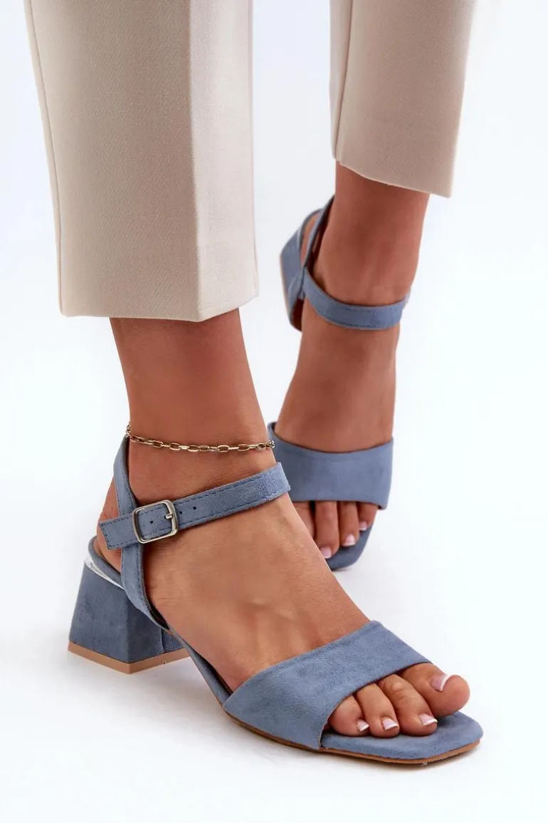 Sandały Damskie Na Klocku Z Eko Zamszu Niebieskie Leisha
