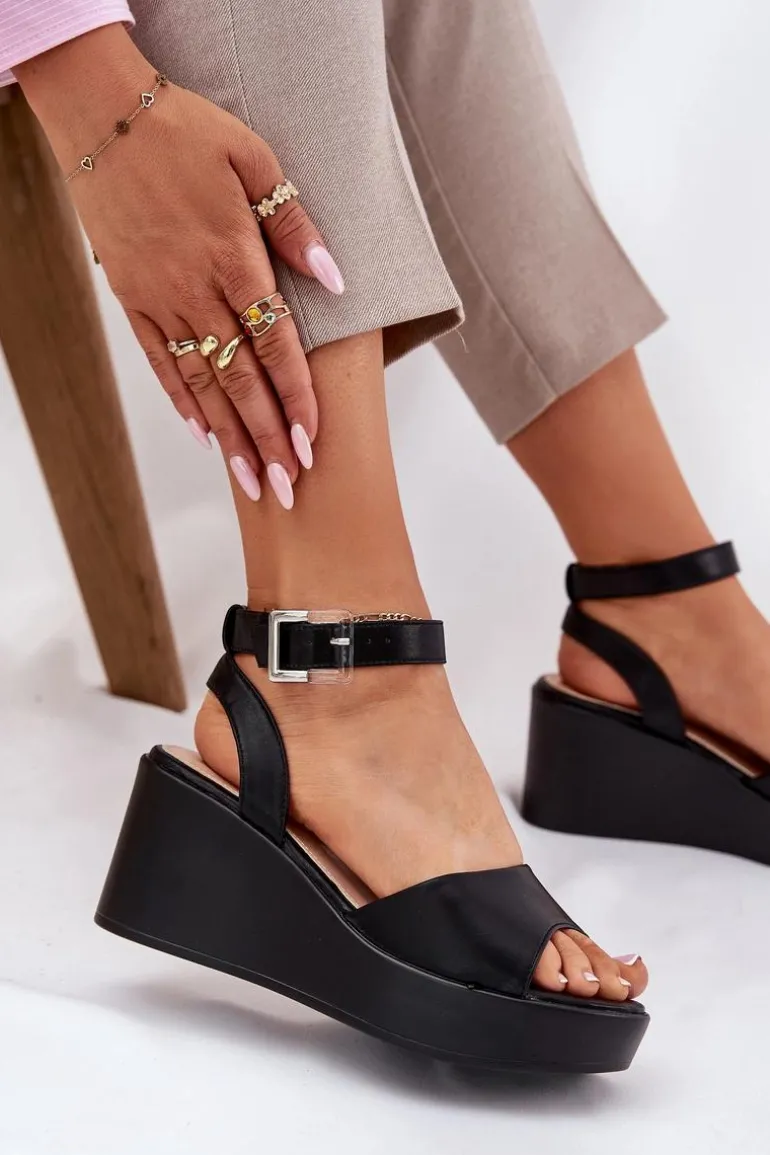 Damskie sandały z eko skóry to elegancka propozycja na letnie dni. Osadzone na koturnie, zapewniają komfort oraz stabilność przez cały dzień. Zapinane na klamrę z regulowanym paskiem, umożliwiają idealne dopasowanie do stopy. Miękka wkładka gwarantuje wygodę, a klasyczny fason sprawia, że te sandały doskonale komponują się z sukienkami oraz spodniami, dodając stylowego akcentu do każdej letniej stylizacji. Przy wyborze rozmiaru prosimy sugerować się tabelą rozmiarów.