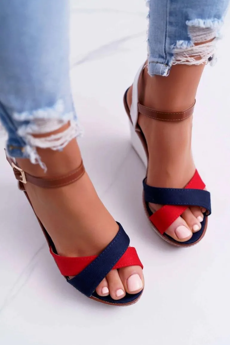 Sandały Damskie Na Koturnie Granatowe Kaisha