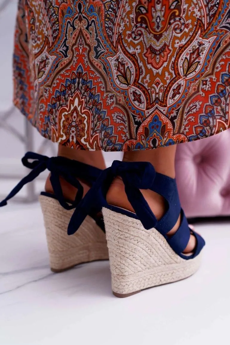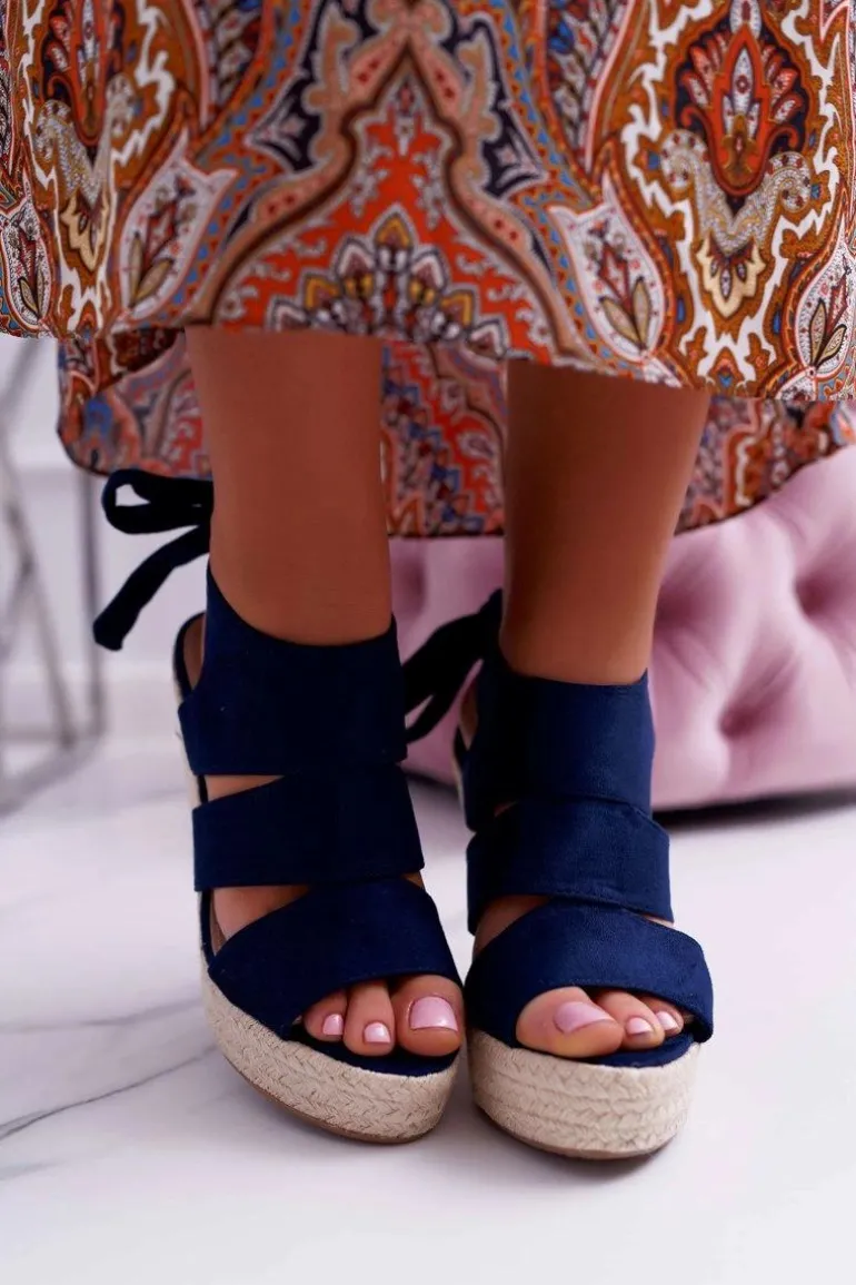 Sandały Damskie Na Koturnie Granatowe Yenga