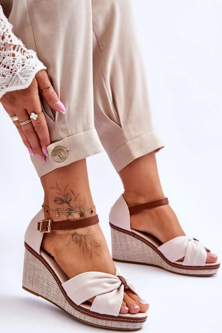 Wygodne sandały na modnym koturnie to klasyka wśród damskiego, letniego obuwia. Wkładka oraz wierzch wykonane zostały z tkaniny. Zapiętek został wzmocniony. Buty posiadają zapięcie na regulowany pasek ze sprzączką. Podeszwa w tych sandałkach jest wykonana z tworzywa i jest antypoślizgowa. Te sandały to idealny wybór do letnich stylizacji. Przy wyborze rozmiaru prosimy sugerować się tabelą rozmiarów.