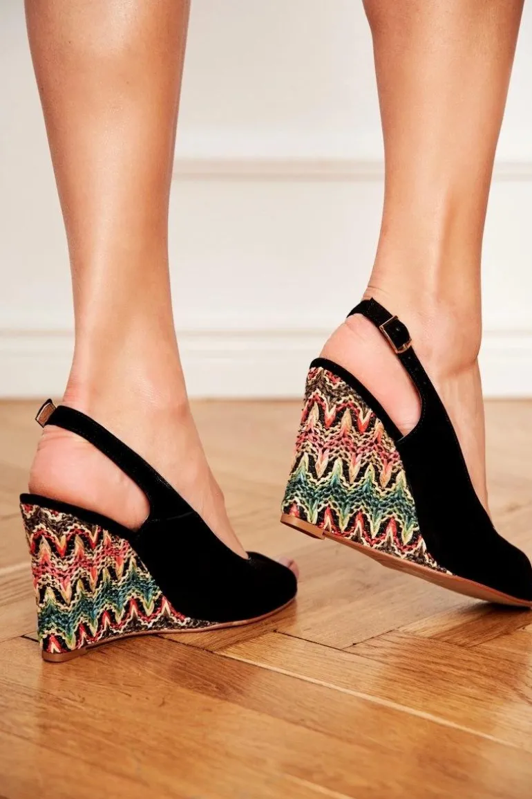 Wiemy że kochacie wysokie buty, dlatego spójrzcie na propozycję od Laura Messi. Sandałki na wysokiej koturnie, która jest cudownie zdobiona w kolorowe wzory. Pięknie uniosą i wyeksponują naszą sylwetkę. Zapinane wokół kostki na pasek. Jeśli marzysz o wygodnym obuwiu na ciepłe dni to dobrze trafiłaś! Przy wyborze rozmiaru prosimy sugerować się tabelą rozmiarów.