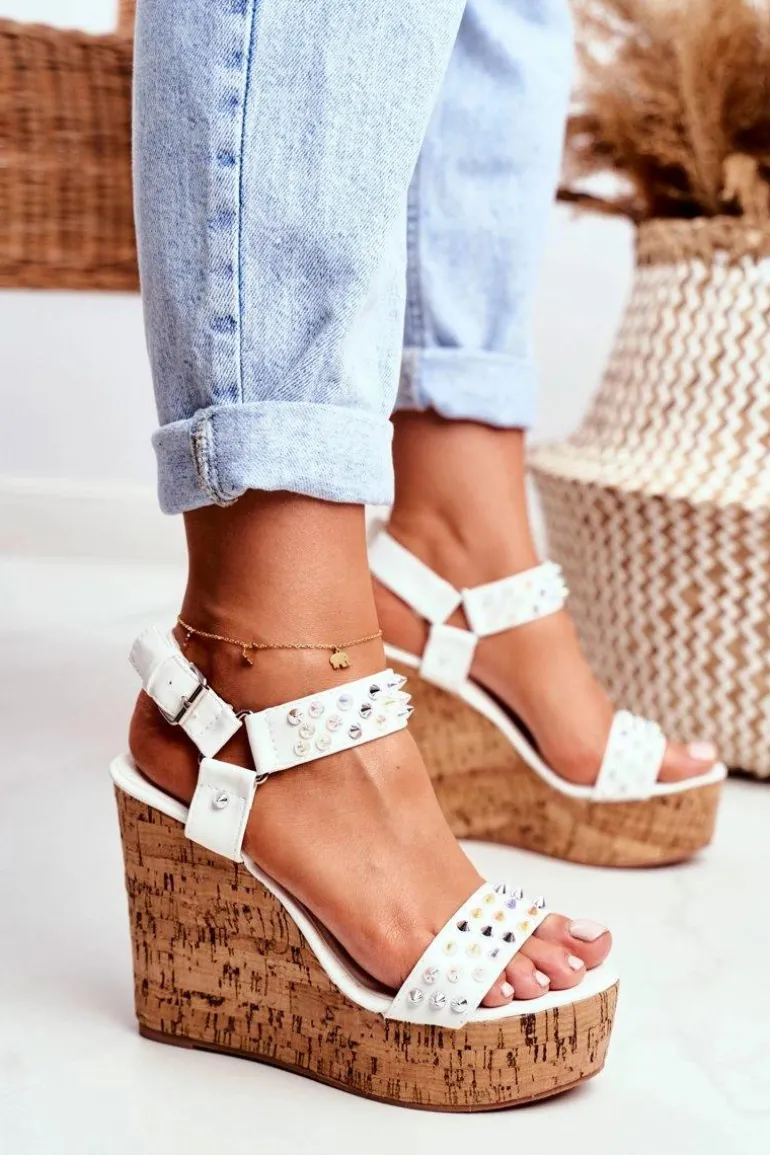 Sandały Damskie Na Koturnie Lu Boo Białe Gail