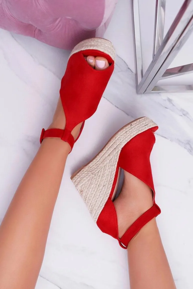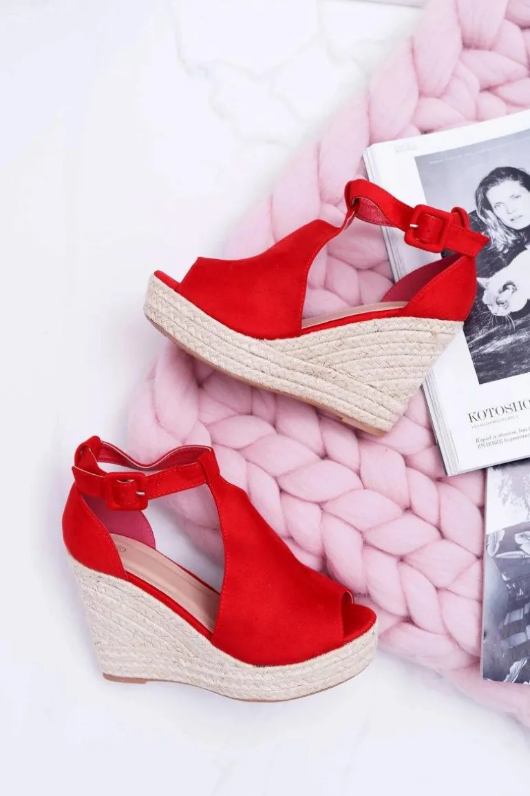 Sandały Damskie Na Koturnie Platforma Czerwone Begest