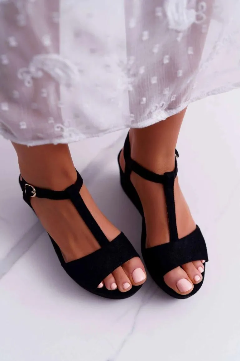 Sandały Damskie Na Koturnie Platformie Czarne Miravaya