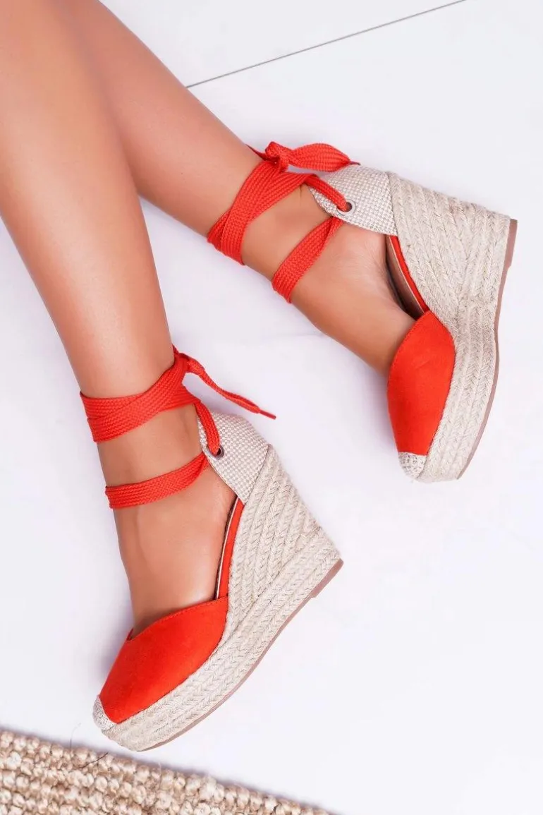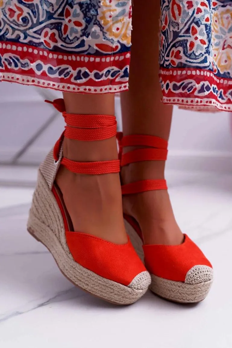 Sandały Damskie Na Koturnie Pomarańczowe Tahaya