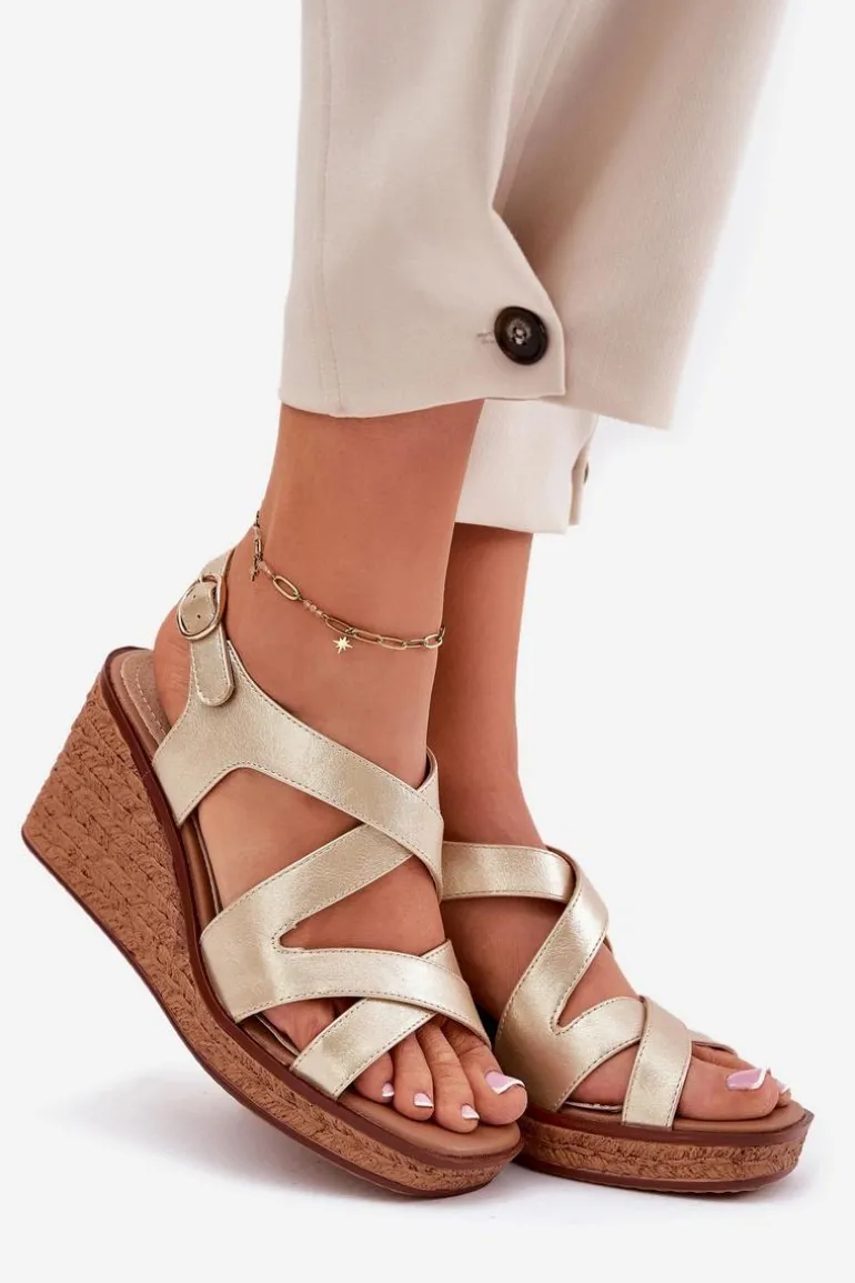 Damskie sandały wykonane z eko skóry to połączenie elegancji i komfortu. Osadzone na koturnie z imitacją plecionki. Przeplatające się paski z przodu nadają unikalnego charakteru, a zapinanie na sprzączkę umożliwia idealne dopasowanie do stopy. Skórzana, miękka wkładka gwarantuje wygodę przez cały dzień. Te sandały będą doskonałym wyborem na letnie dni, łącząc modny wygląd z funkcjonalnością. Przy wyborze rozmiaru prosimy sugerować się tabelą rozmiarów.
