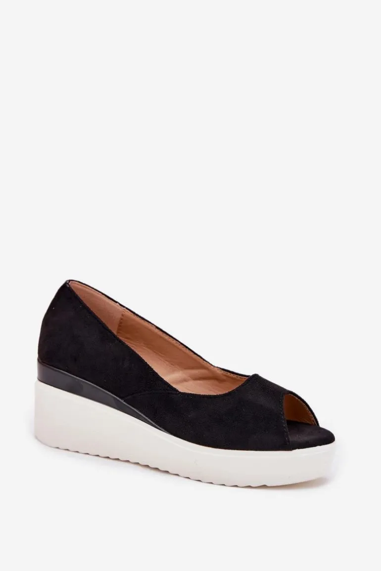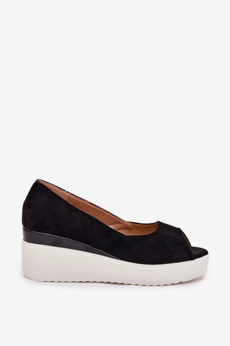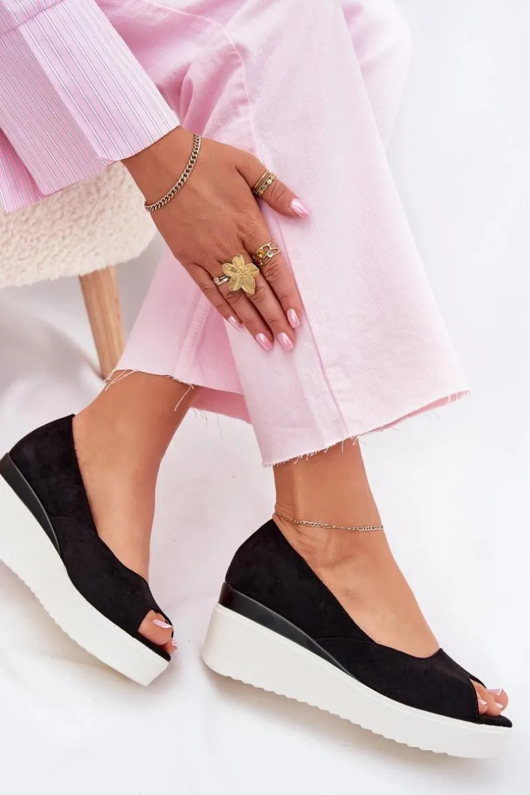 Sandały Damskie Na Koturnie Z Eko Zamszu Czarne Velira